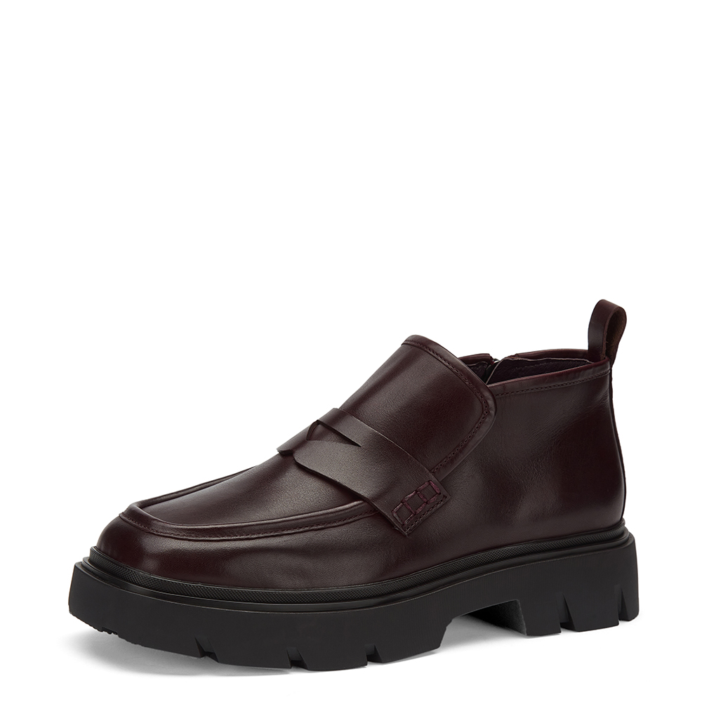 스퀘어 셰입이 트렌디한 무드의 로퍼. 옆지퍼로 착화하기 편한 제품