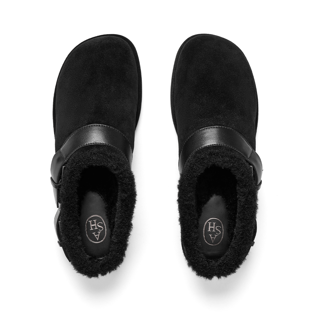 - 퍼 디테일과 스웨이드 벨루어 소재가 믹스된 블로퍼