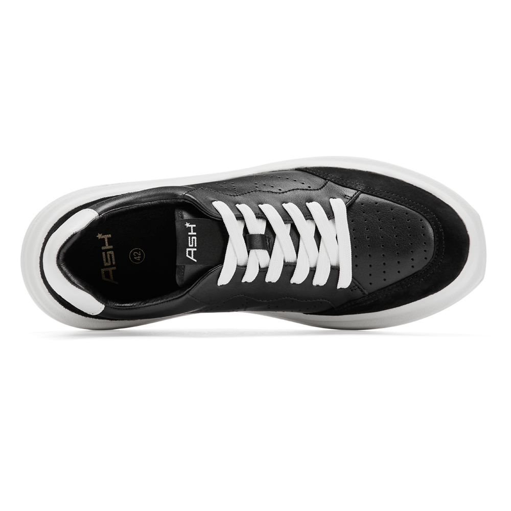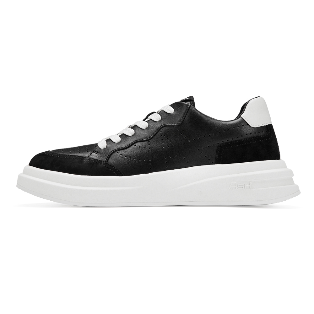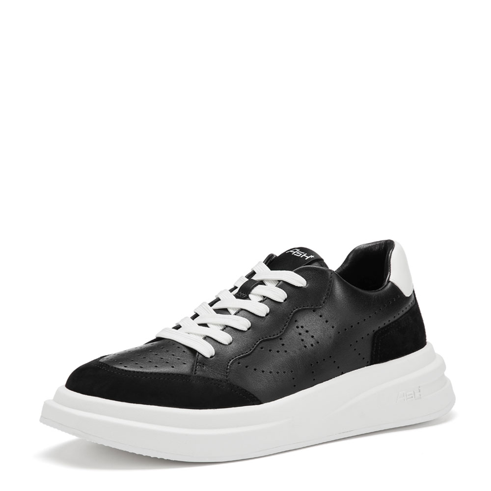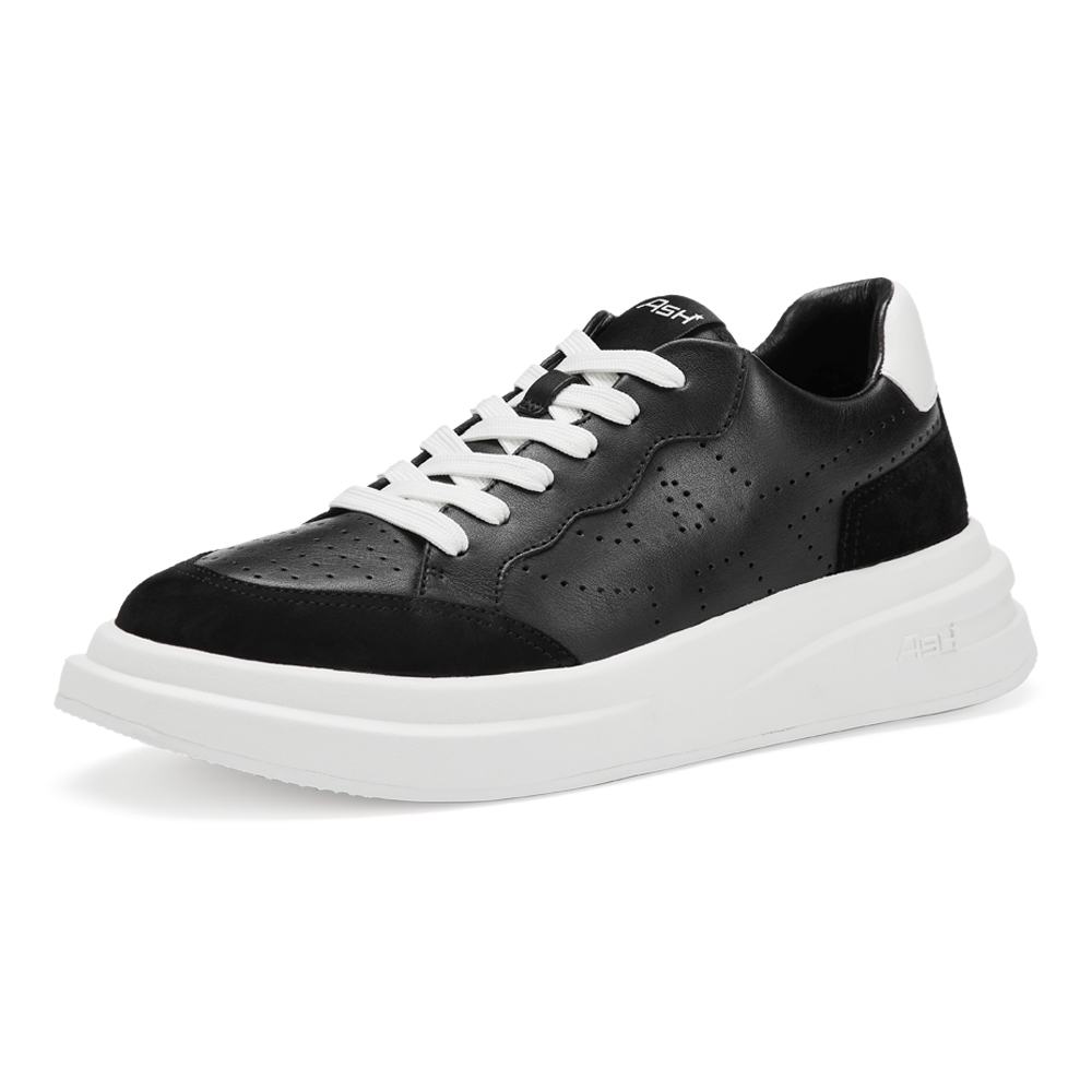 - 로고 펀칭 디테일이 고급스러운 레더 스니커즈. 더블 레이어의 아웃솔이 유니크한 제품