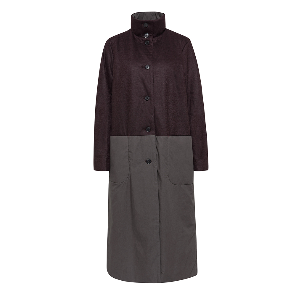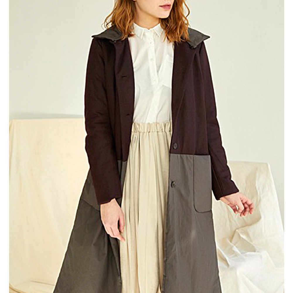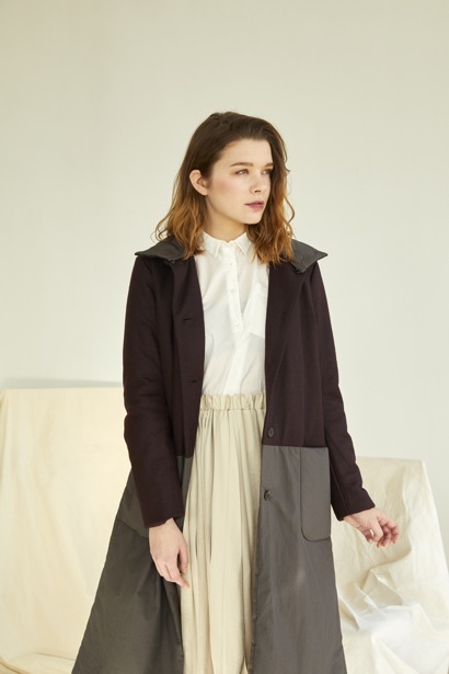 투톤컬러배색 포인트의 라이트 패디드 롱점퍼.