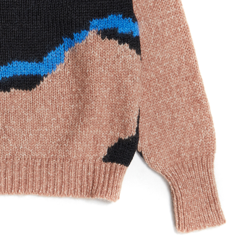 배색 패턴이 돋보이는 드롭숄더 루즈핏 니트 스웨터