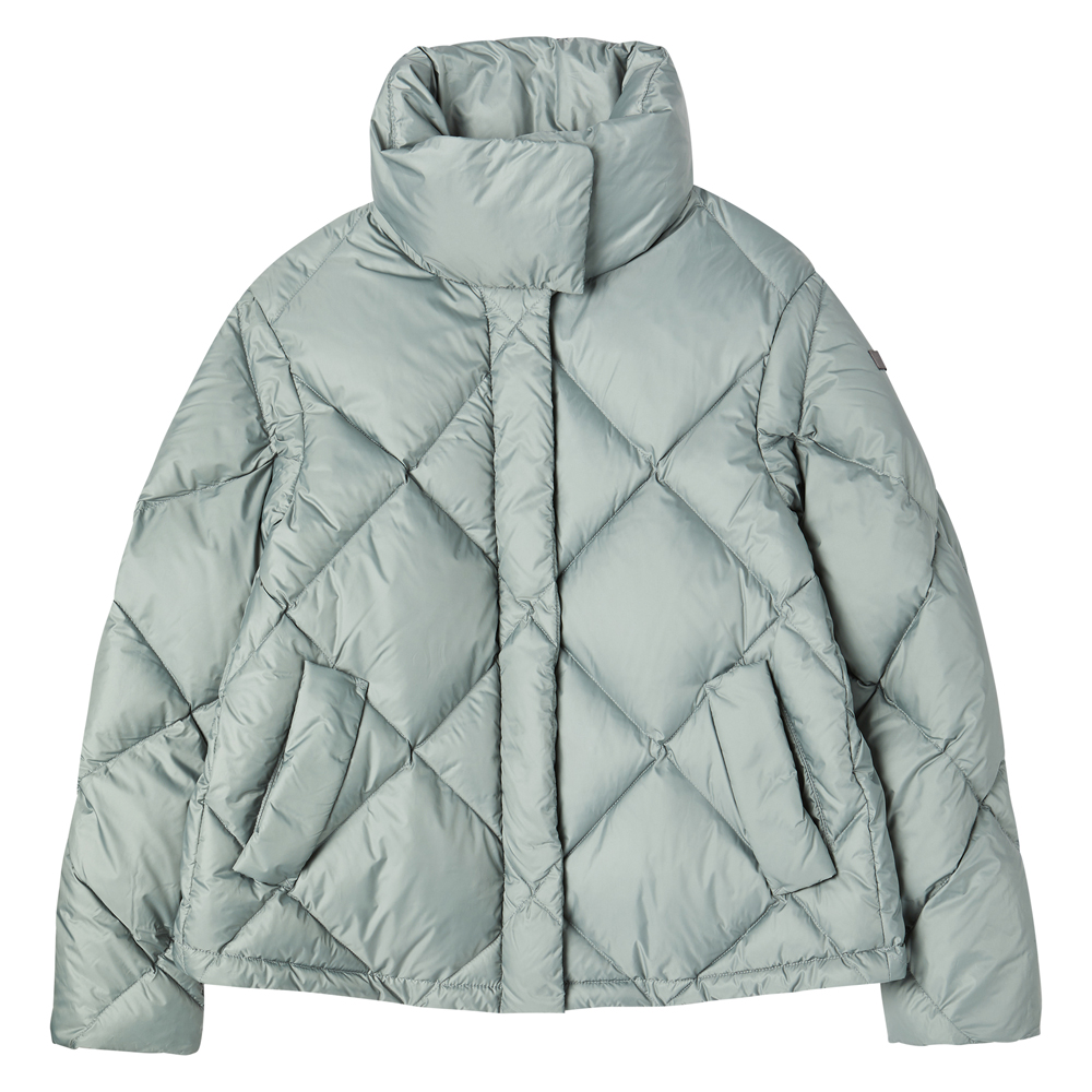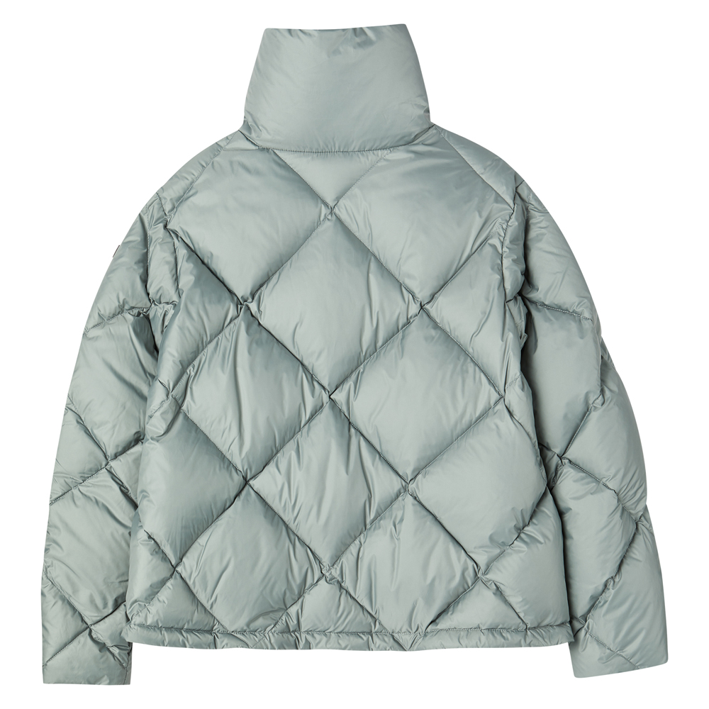 가벼운 무게와 구스다운 충전재로 보온성이 뛰어난 다이아몬드 퀼팅 패턴 숏 다운자켓.
