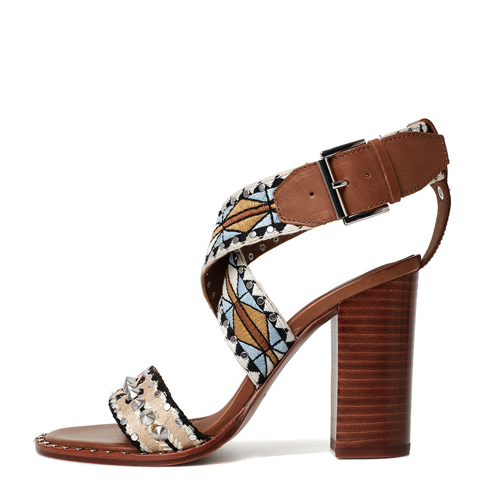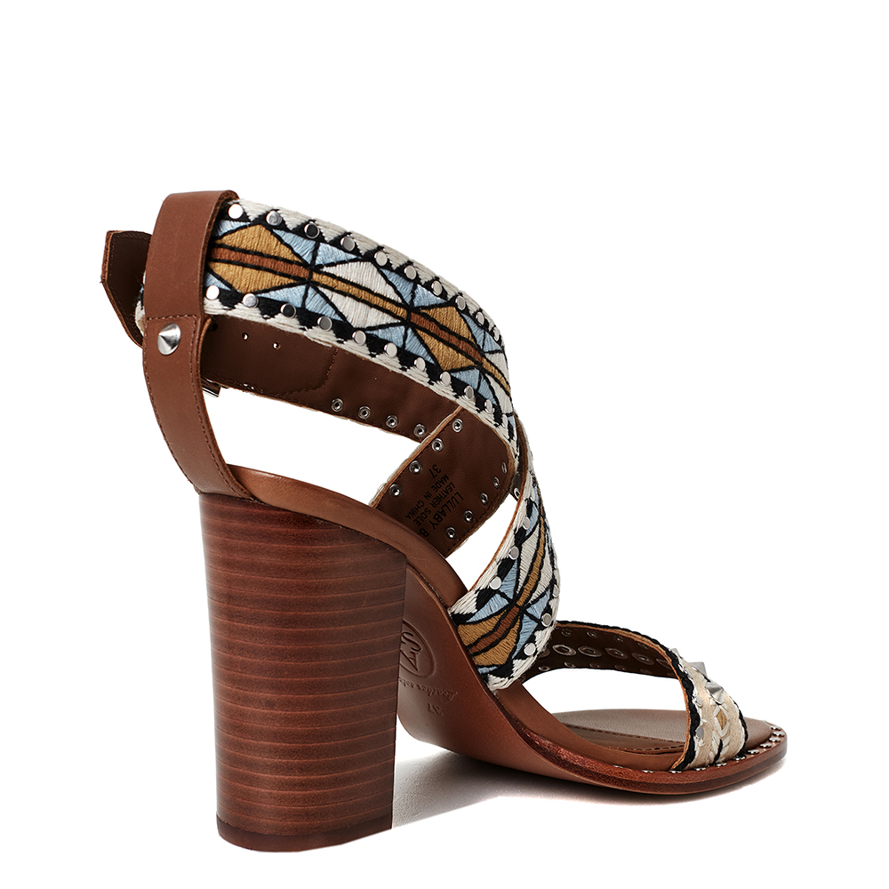 - 에스닉 프린트가 위빙된 스트랩의 청키힐 샌들