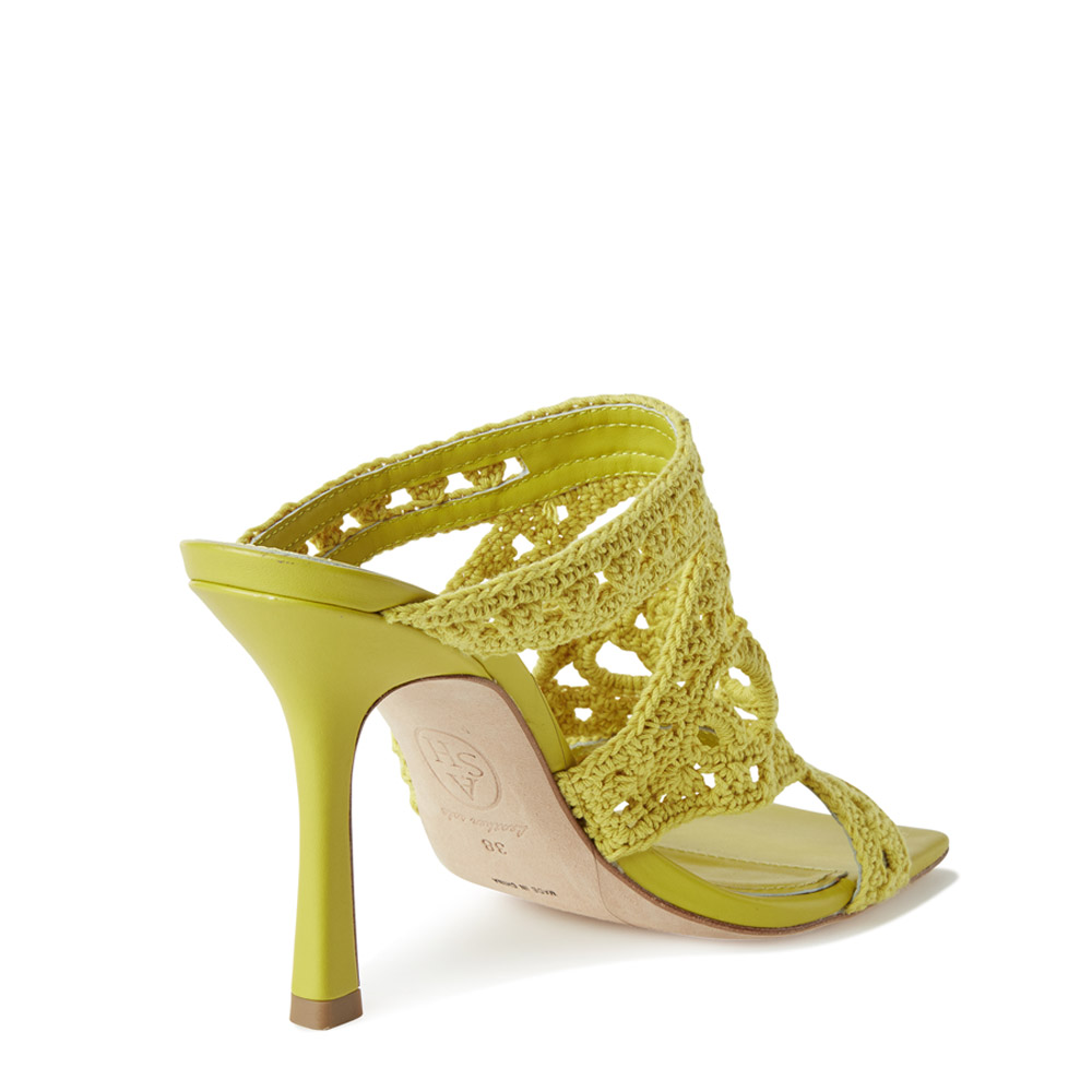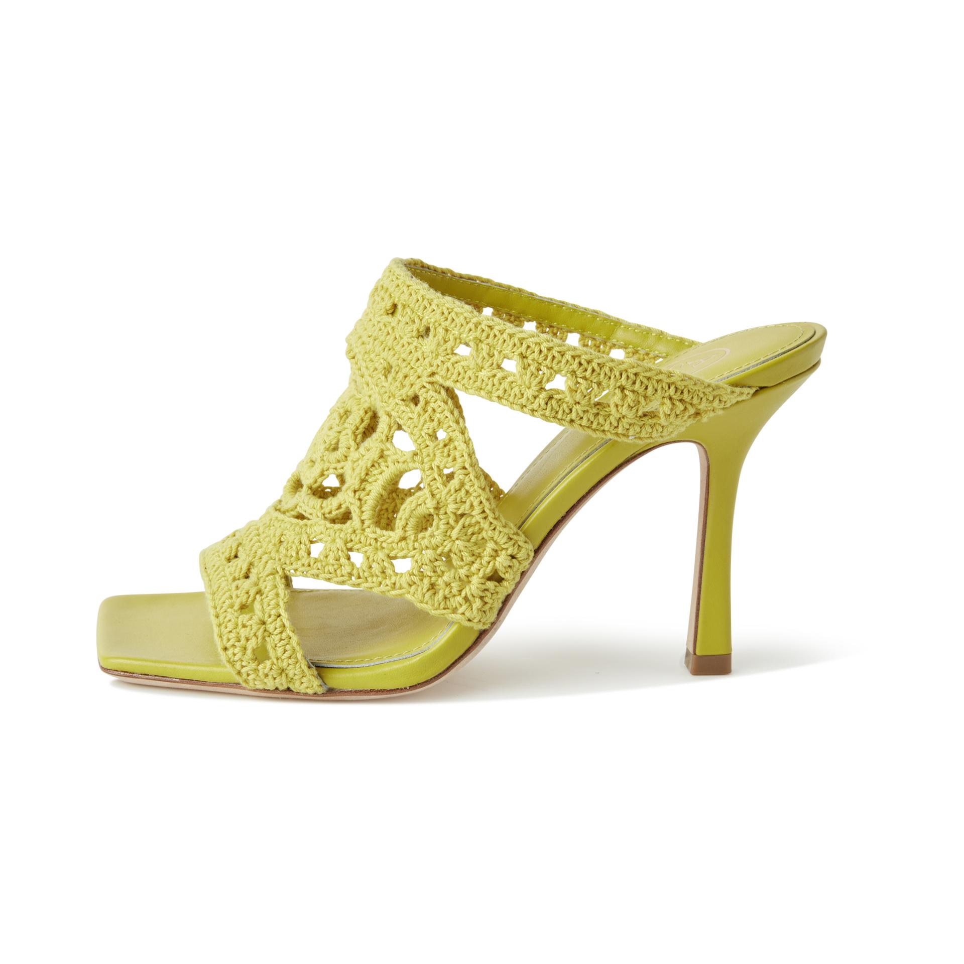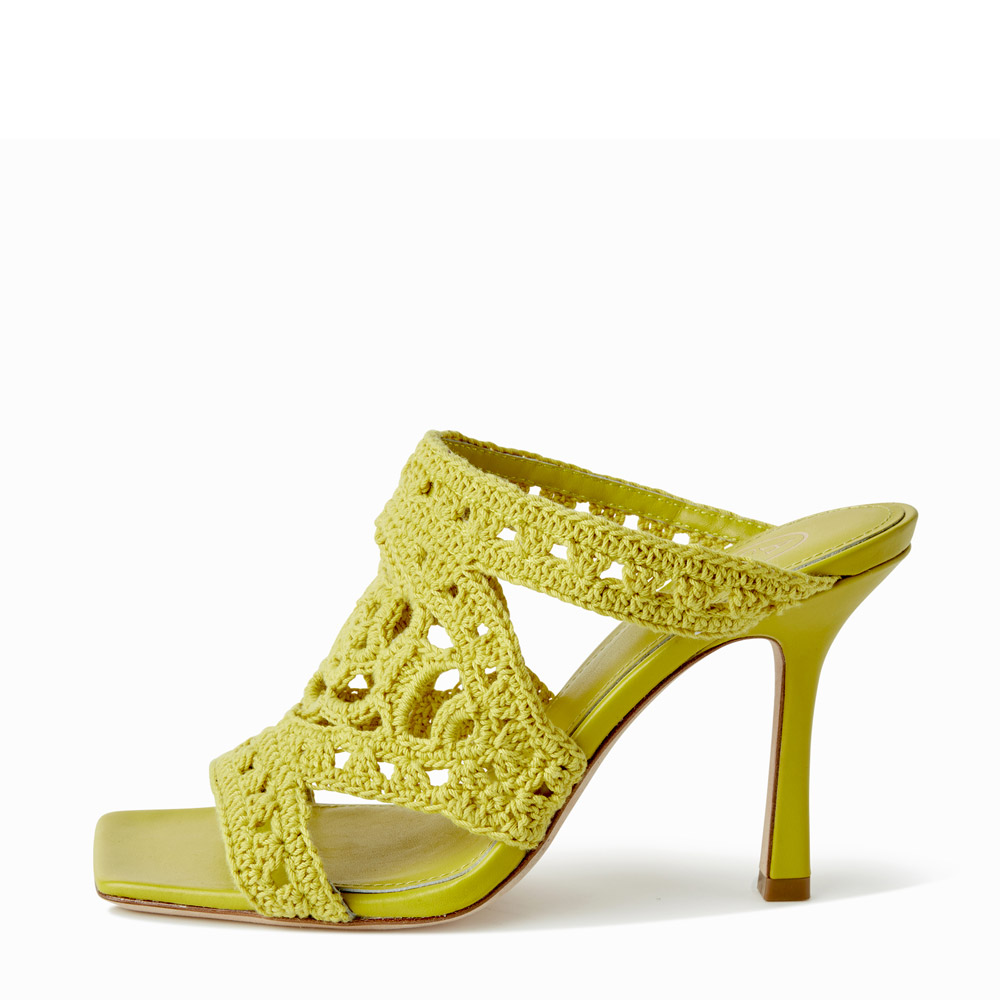- 크로셰 니트 어퍼로 편안하면서도 우아한 뮬 샌들