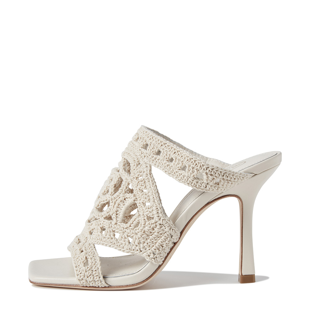 - 크로셰 니트 어퍼로 편안하면서도 우아한 뮬 샌들