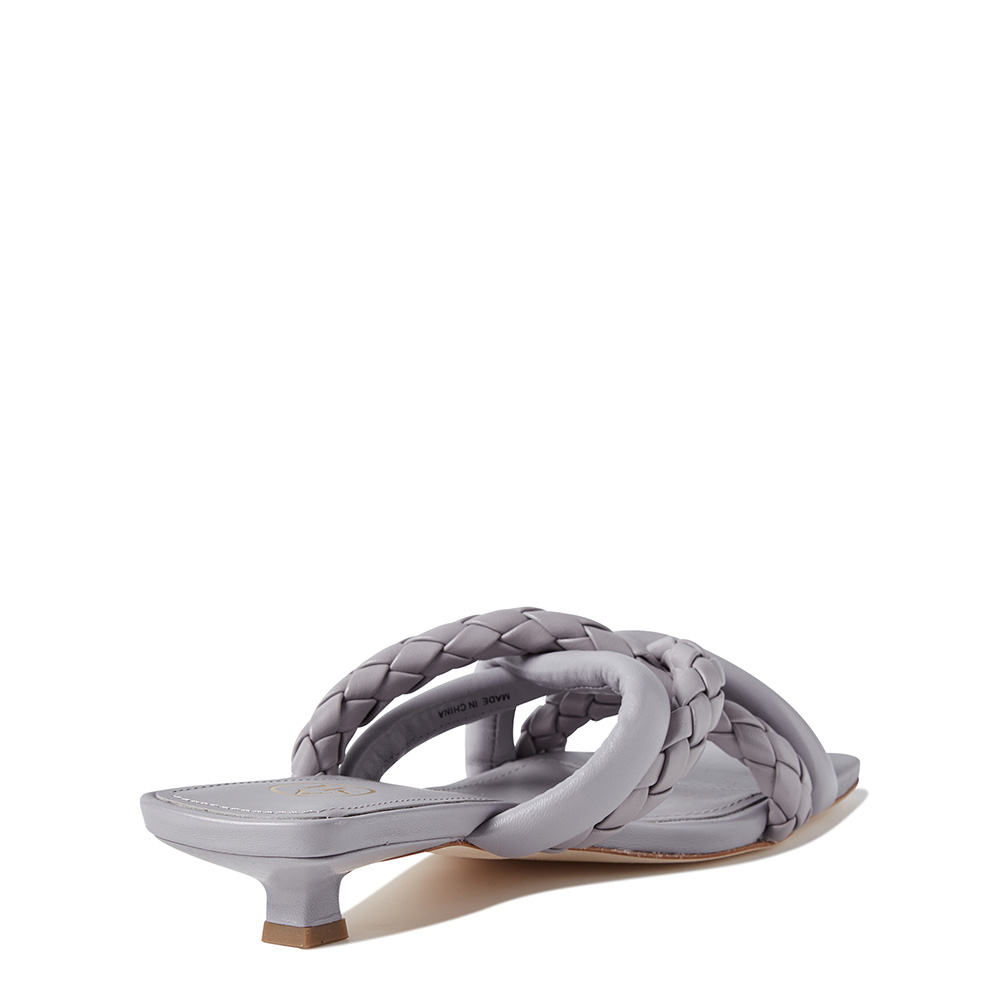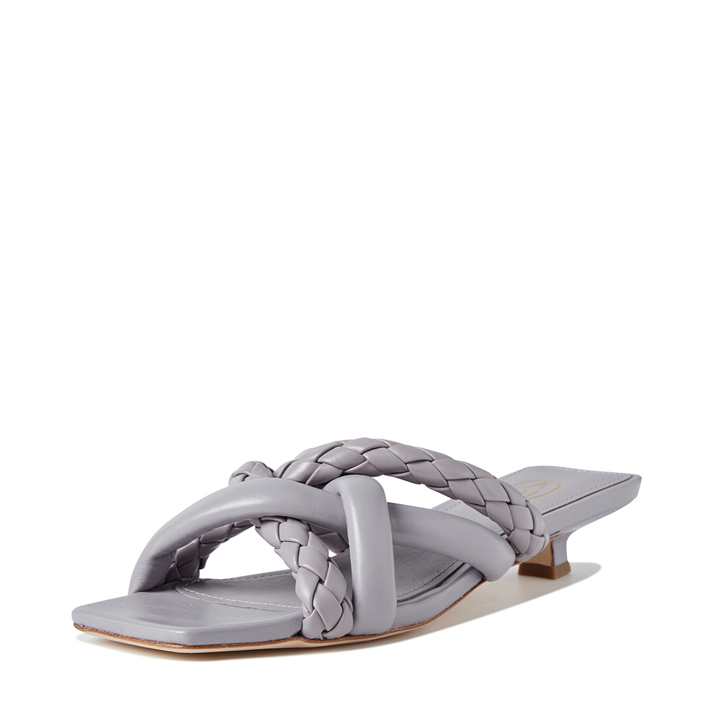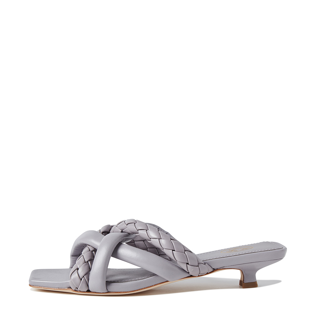- 더블 트위스트 스트랩과 싱글 라인 스트랩을 위빙 디자인으로 연출한 뮬