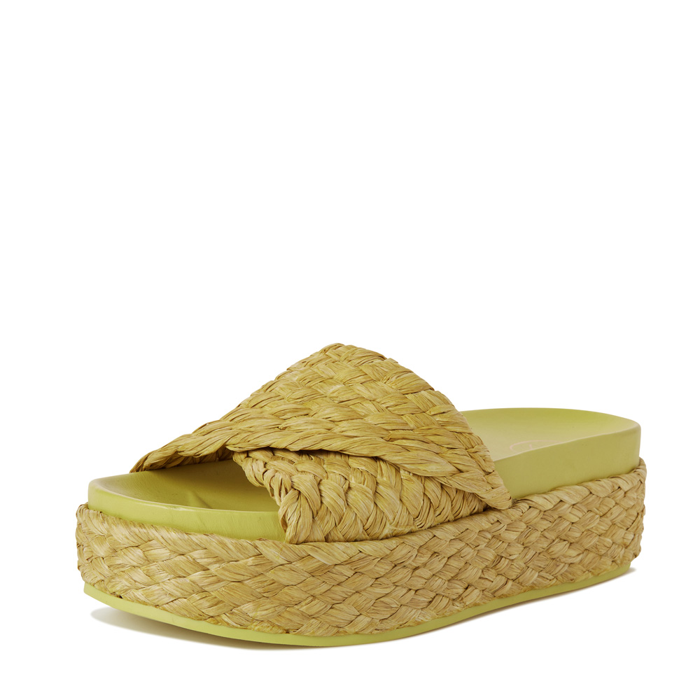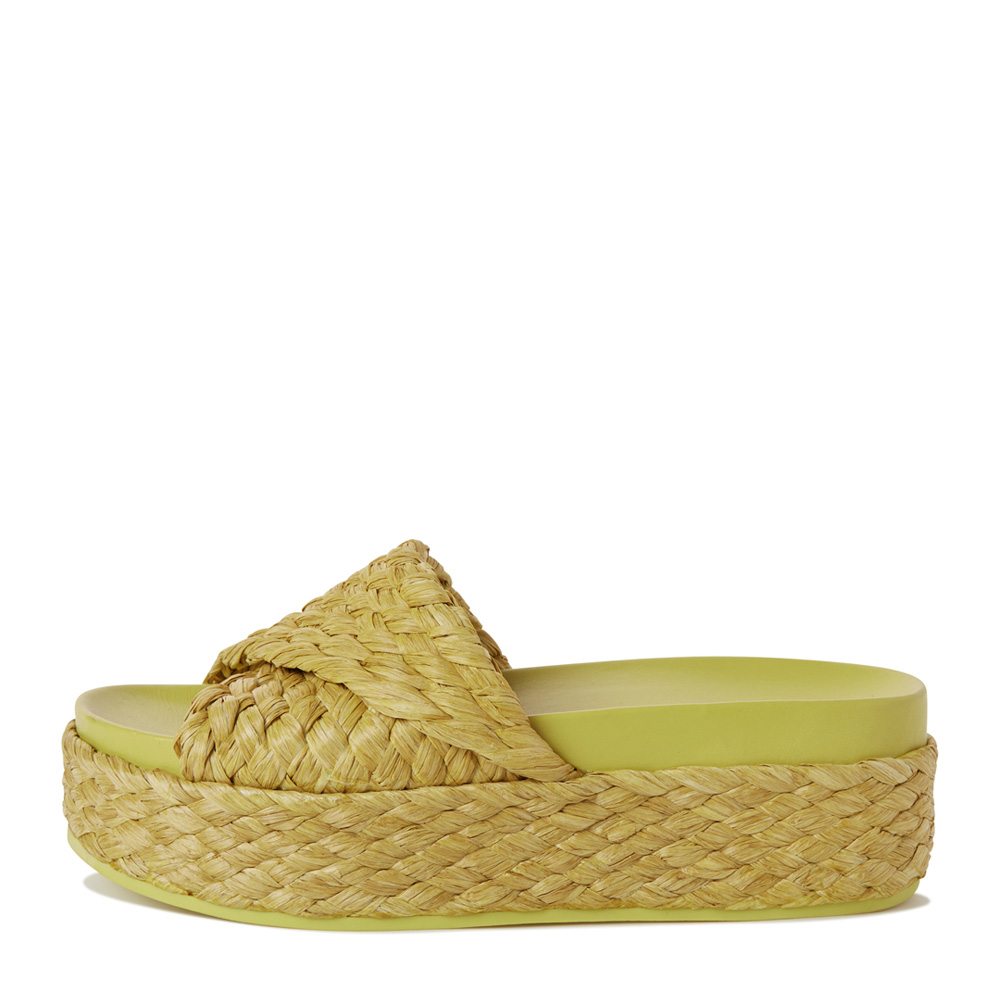 - 팝한 컬러의 라피아 플랫폼 슬리퍼