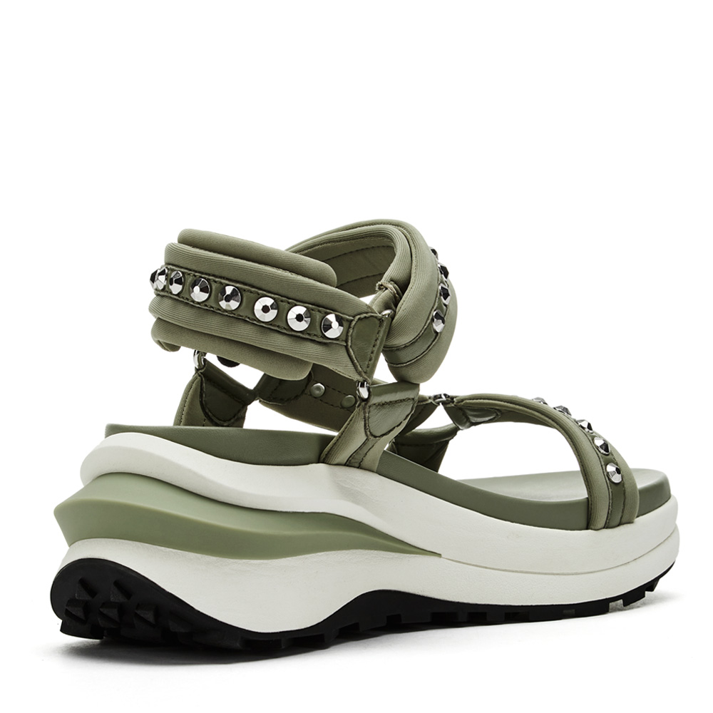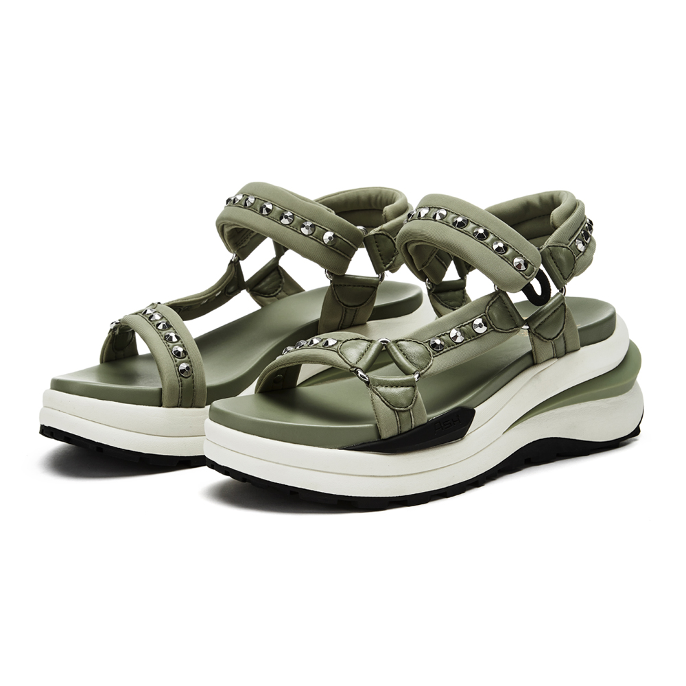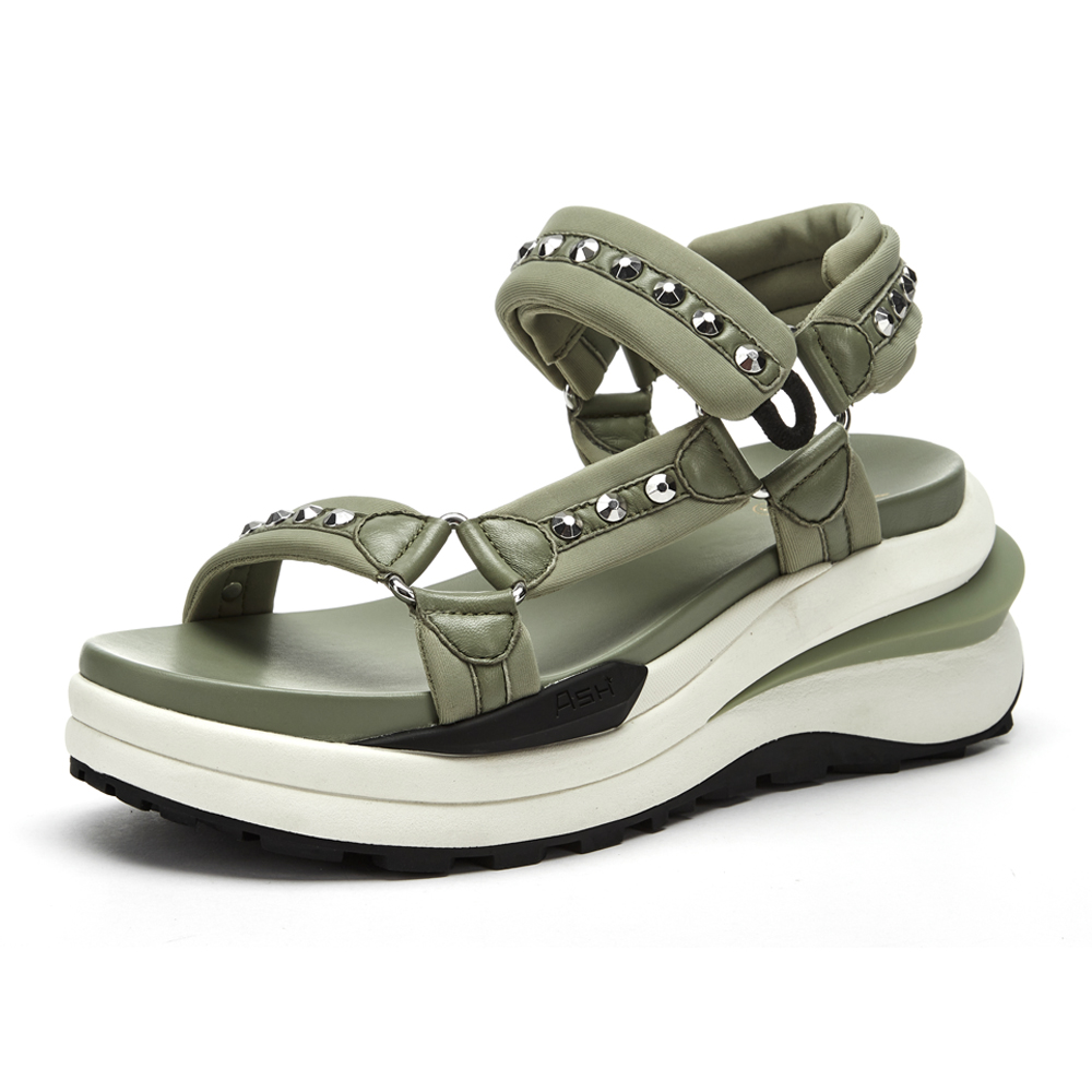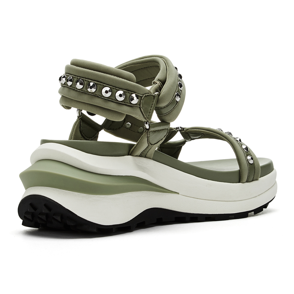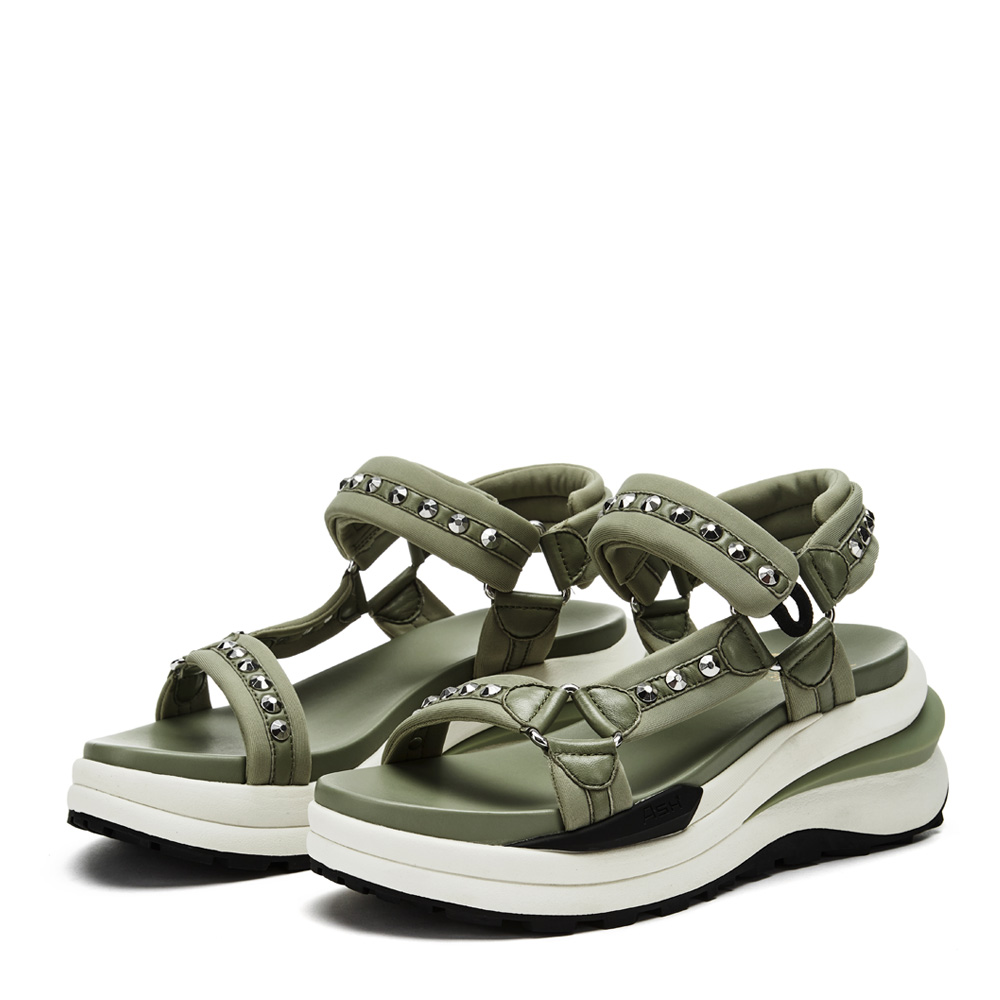 -구조적인 플랫폼 아웃솔에 메쉬 스트랩이 돋보이는 스포츠 샌들