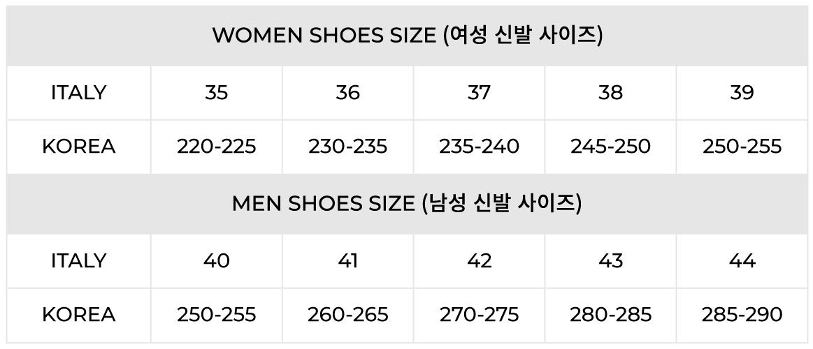 - 발볼 폭, 취향 등 개인차가 크기 때문에 ㅓㅇ확한 사이즈 안내는 어려운 점 양해 부탁드립니다.