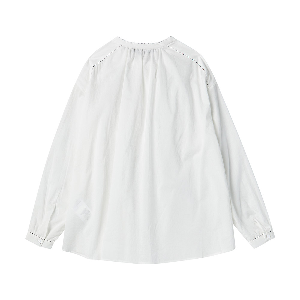 넥 라운드 스티치 디테일의 노카라 코튼 블라우스