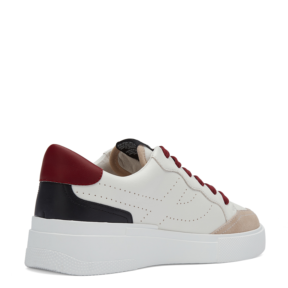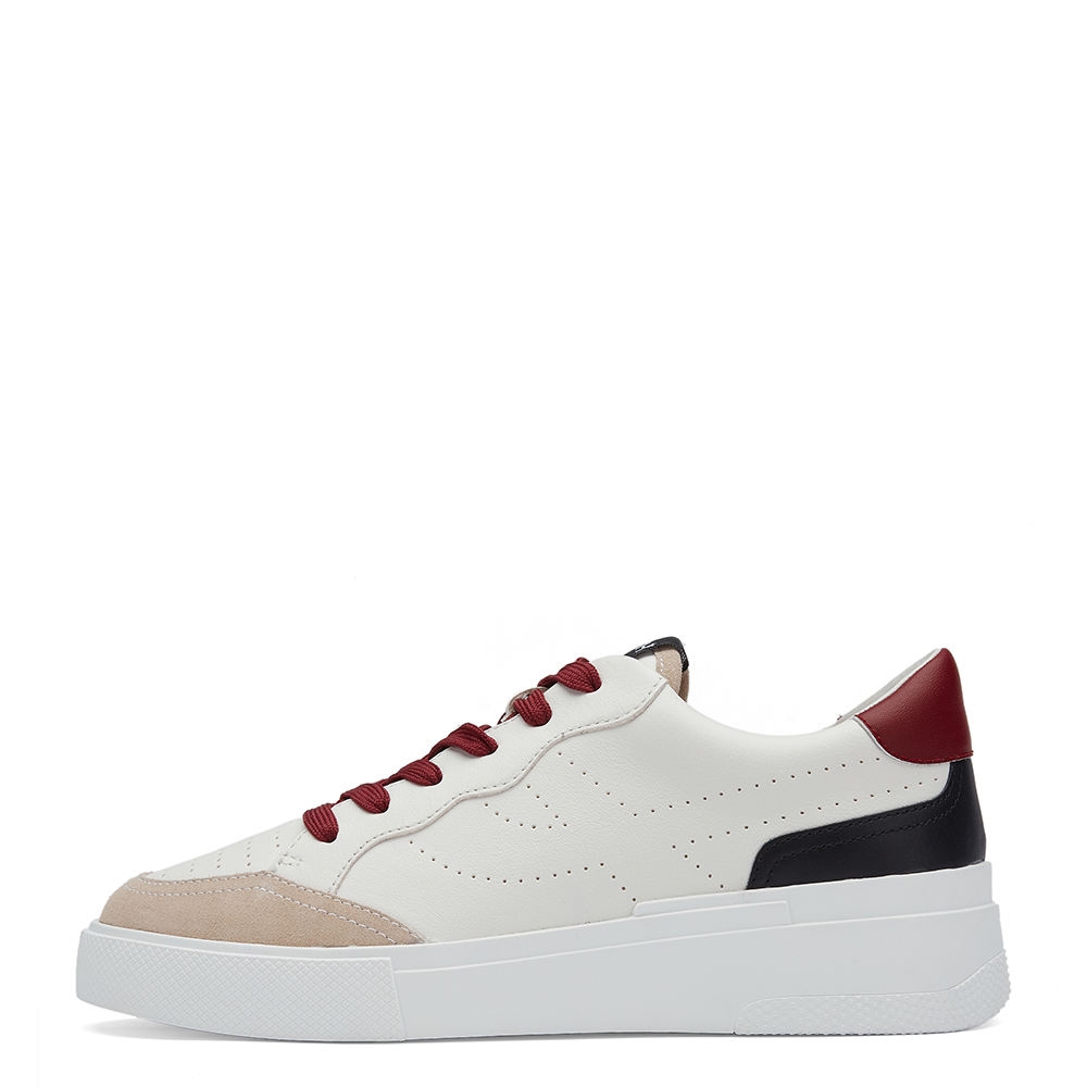 사이드 퍼포레이트 펀칭 디테일과 백팁, 앞코의 컬러 배색이 고급스러운 심플 레더 스니커즈
