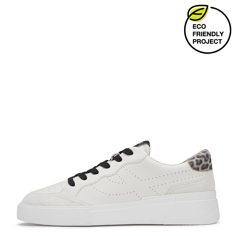 사이드 퍼포레이트 펀칭 디테일과 백팁, 앞코의 컬러 배색이 고급스러운 심플 레더 스니커즈