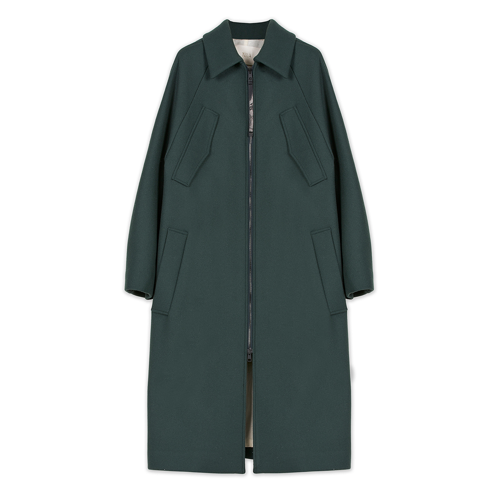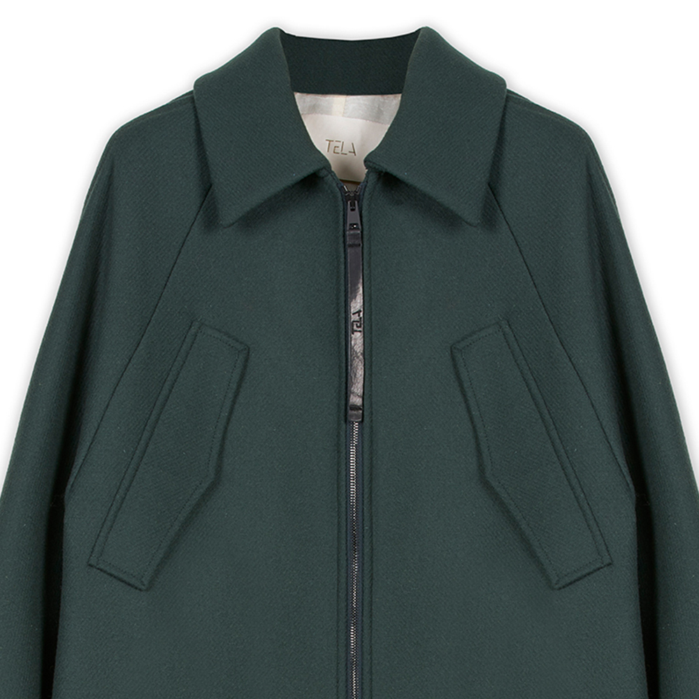 빅 플랩 포켓 포인트의 래글런 소매 짚업 코트