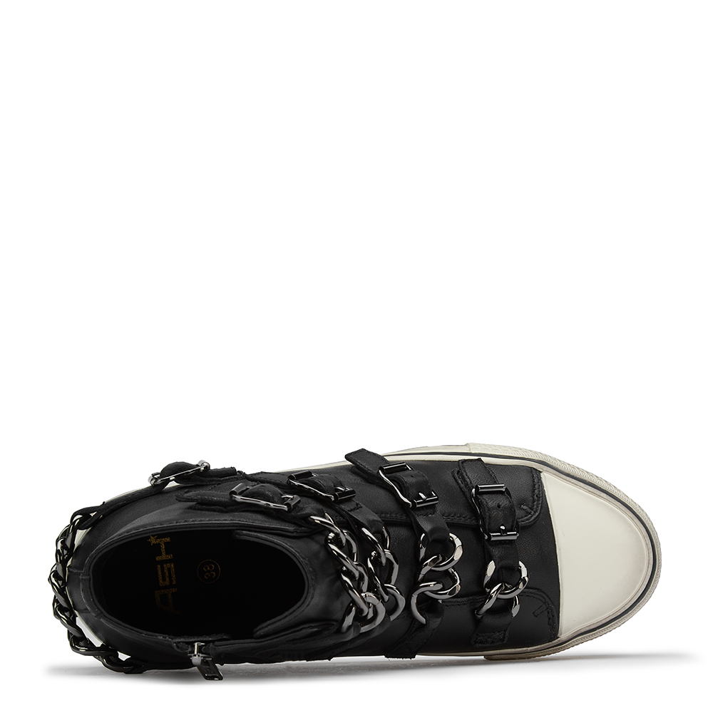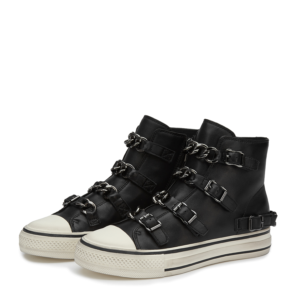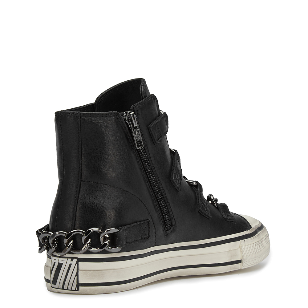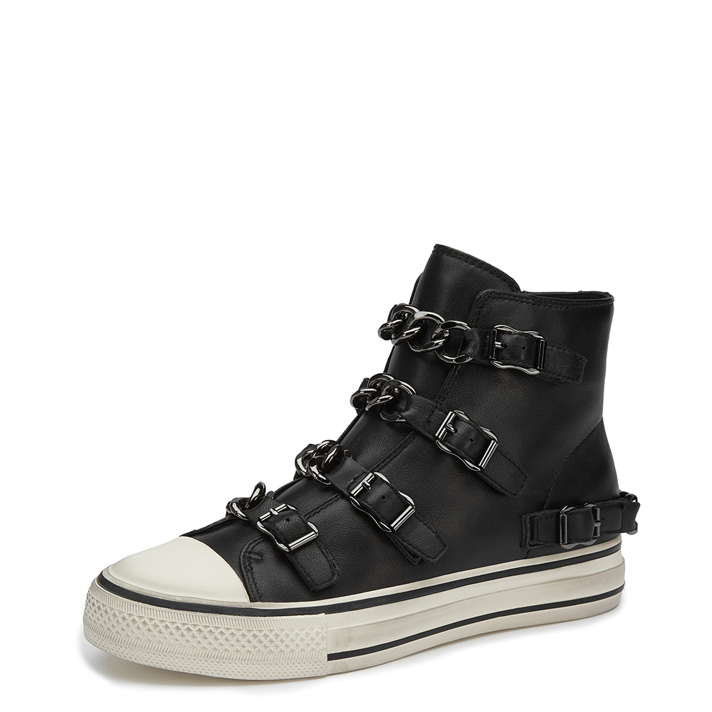메탈 체인 버클로 락시크 무드를 잘 살린 아쉬의 시그니처 하이탑 스니커즈