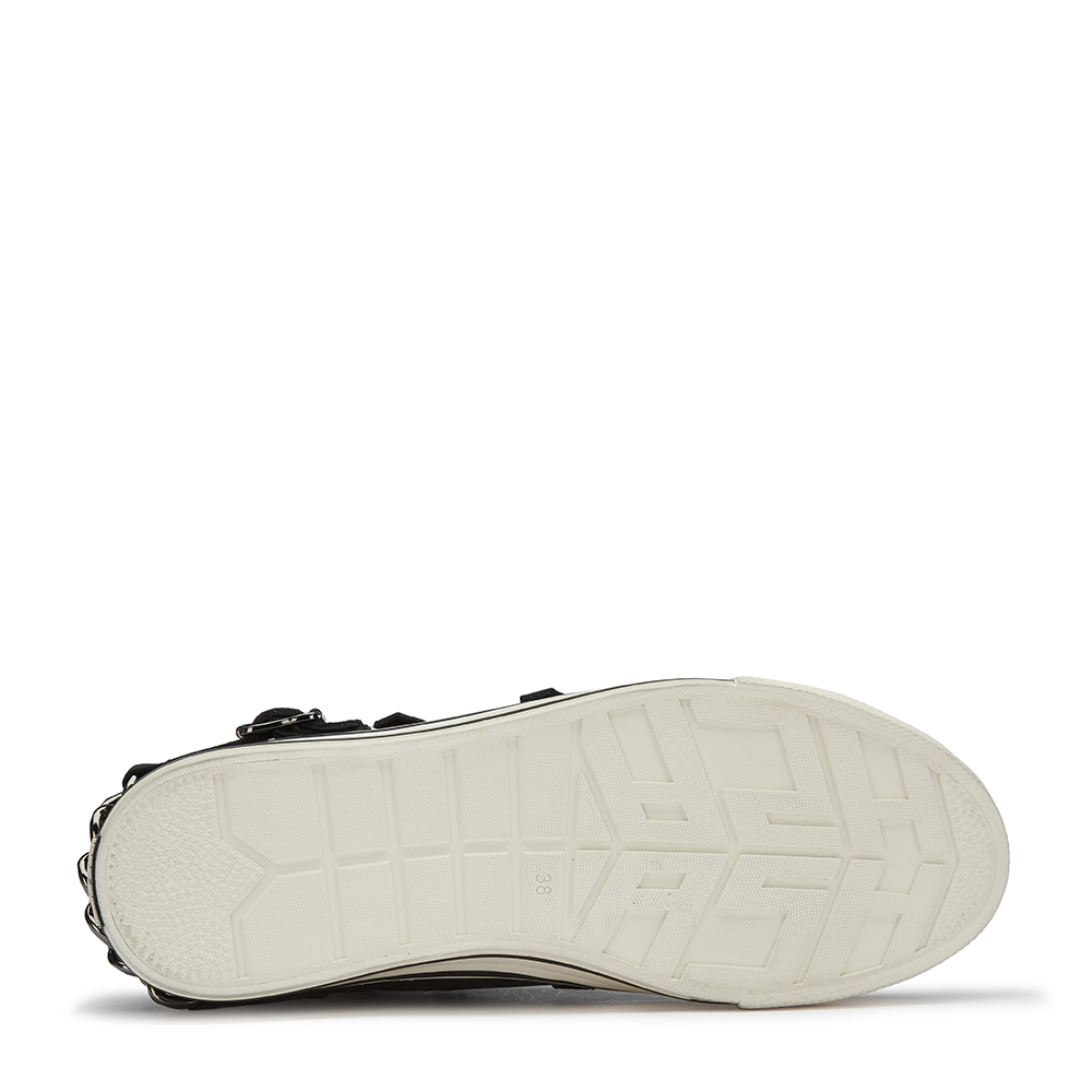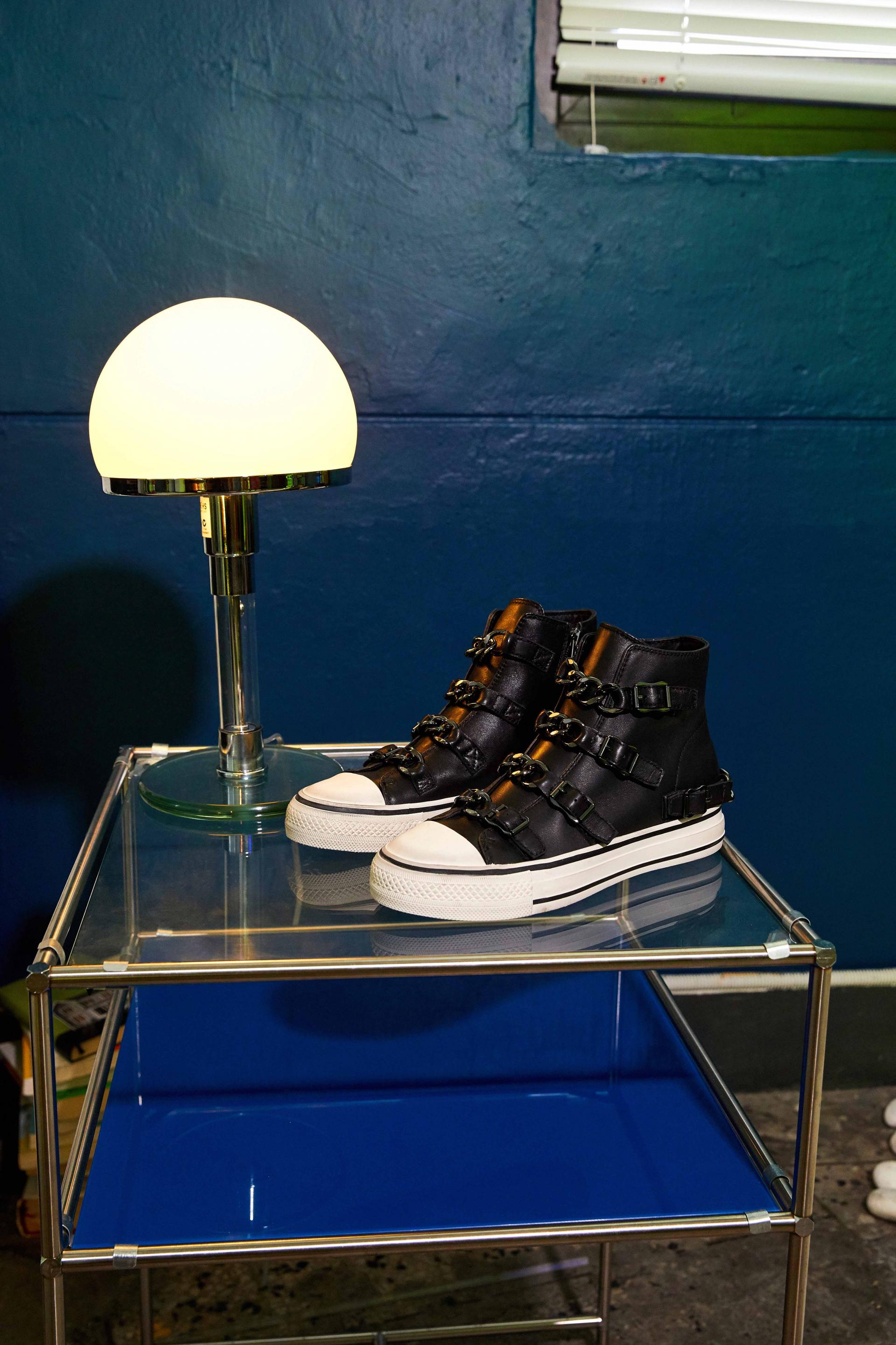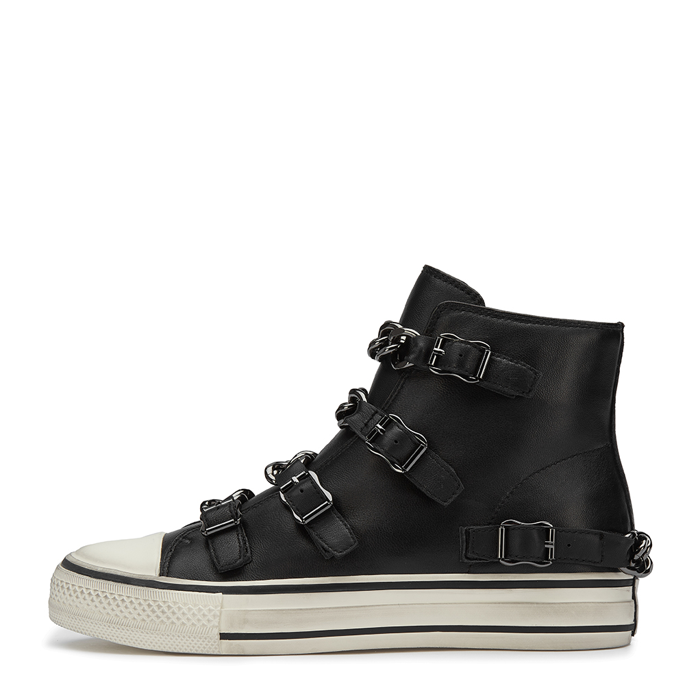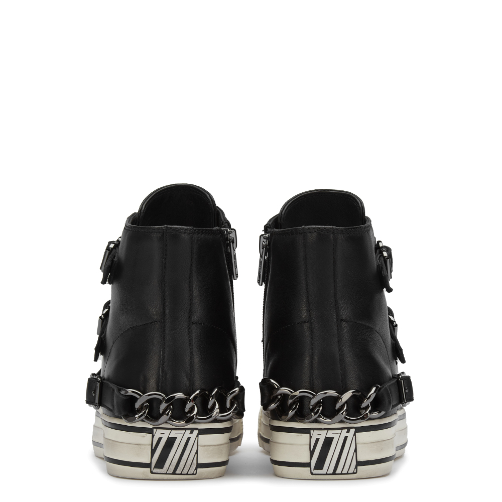 메탈 체인 버클로 락시크 무드를 잘 살린 아쉬의 시그니처 하이탑 스니커즈