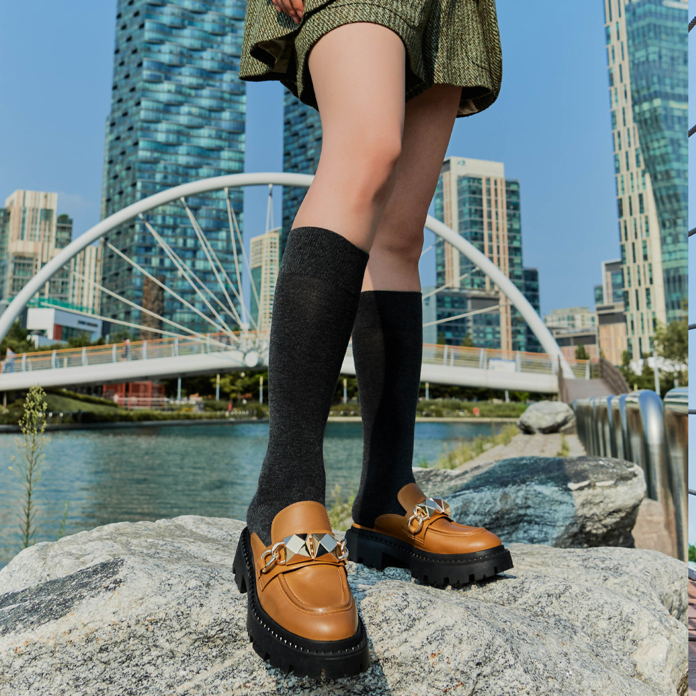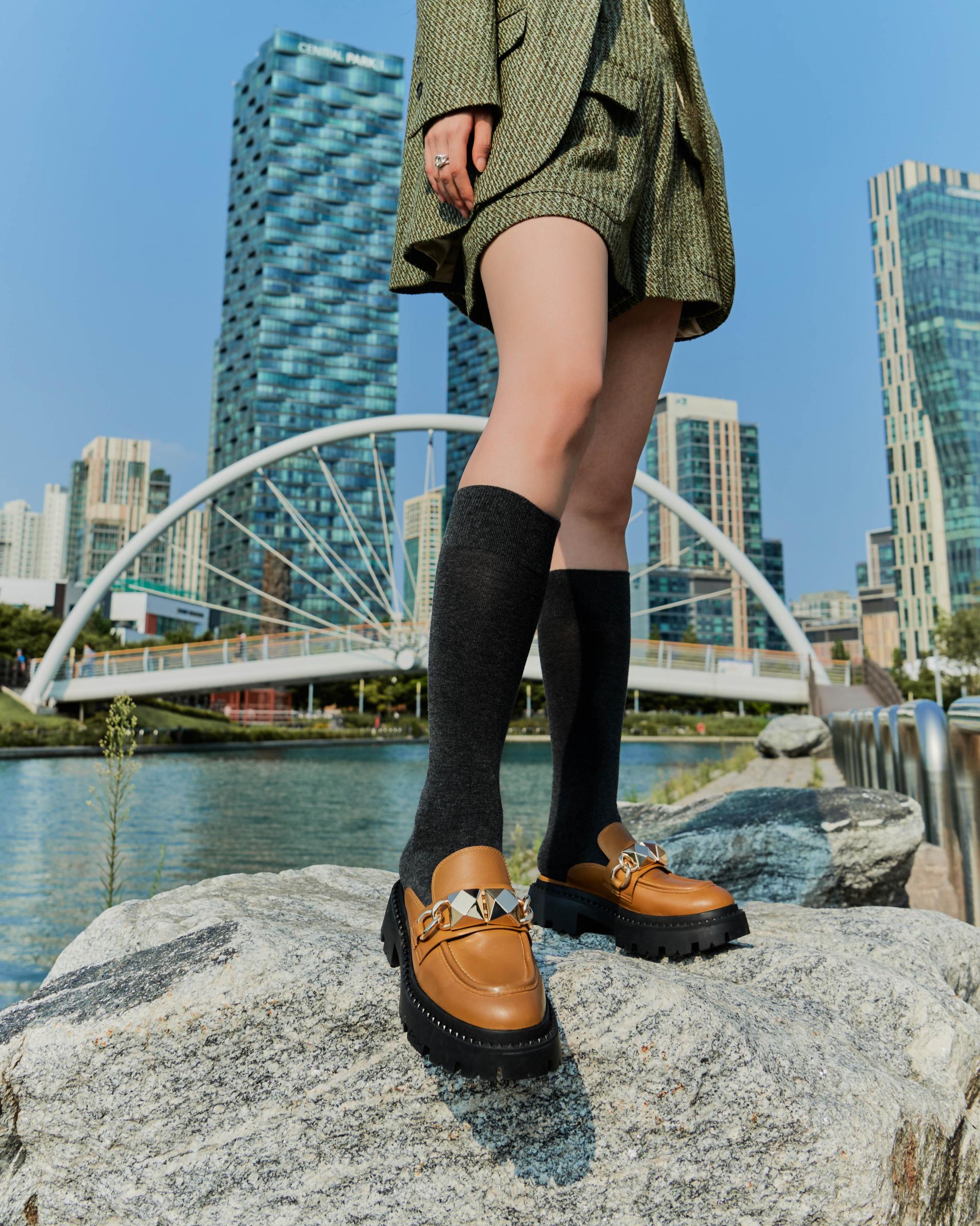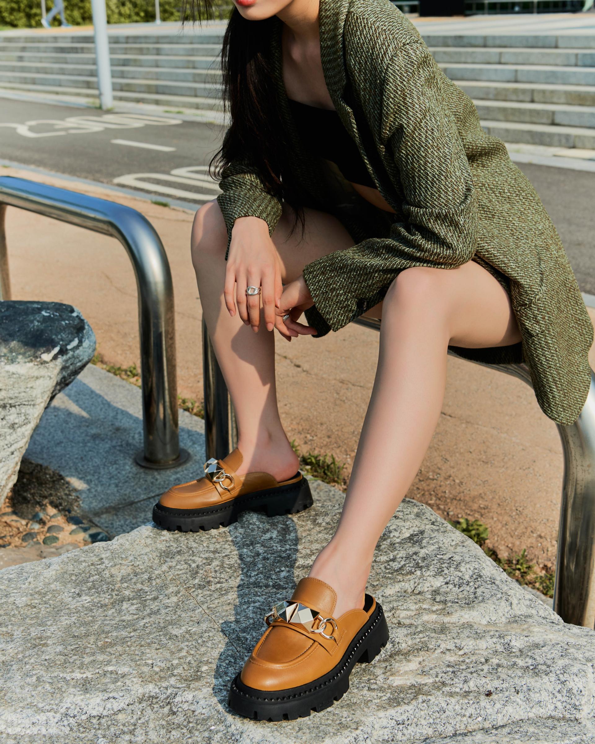 - 스터드 장식의 청키한 아웃솔에 블랙 메탈 체인의 포인트를 준 블로퍼