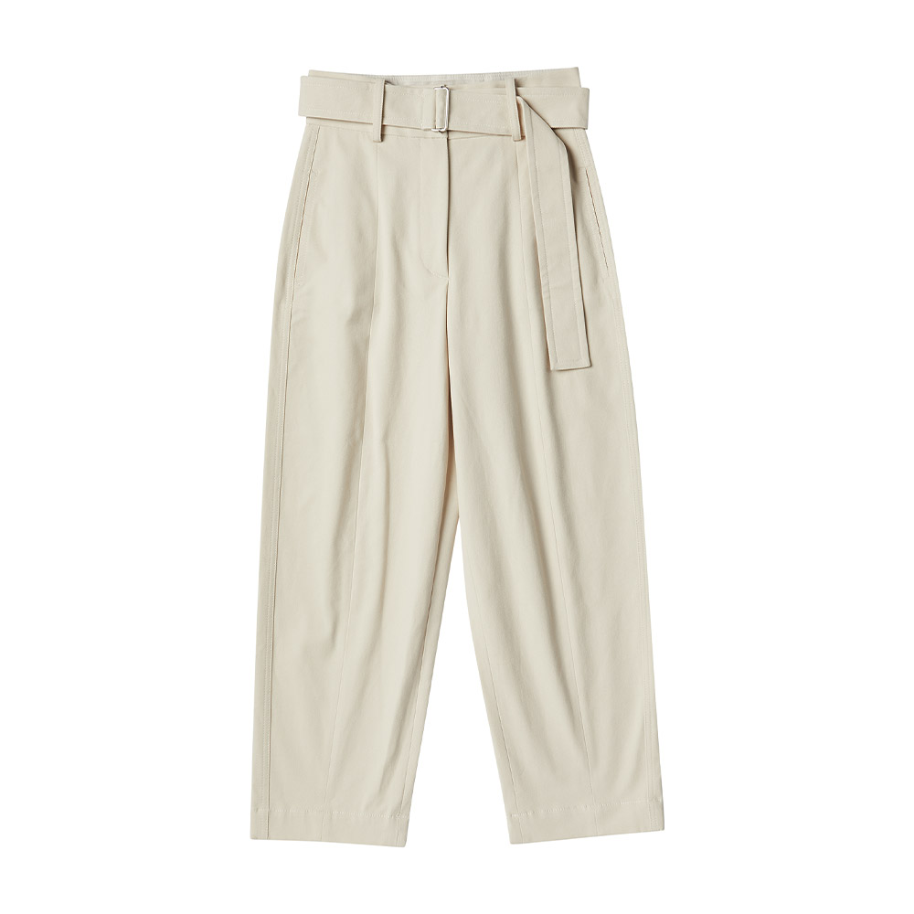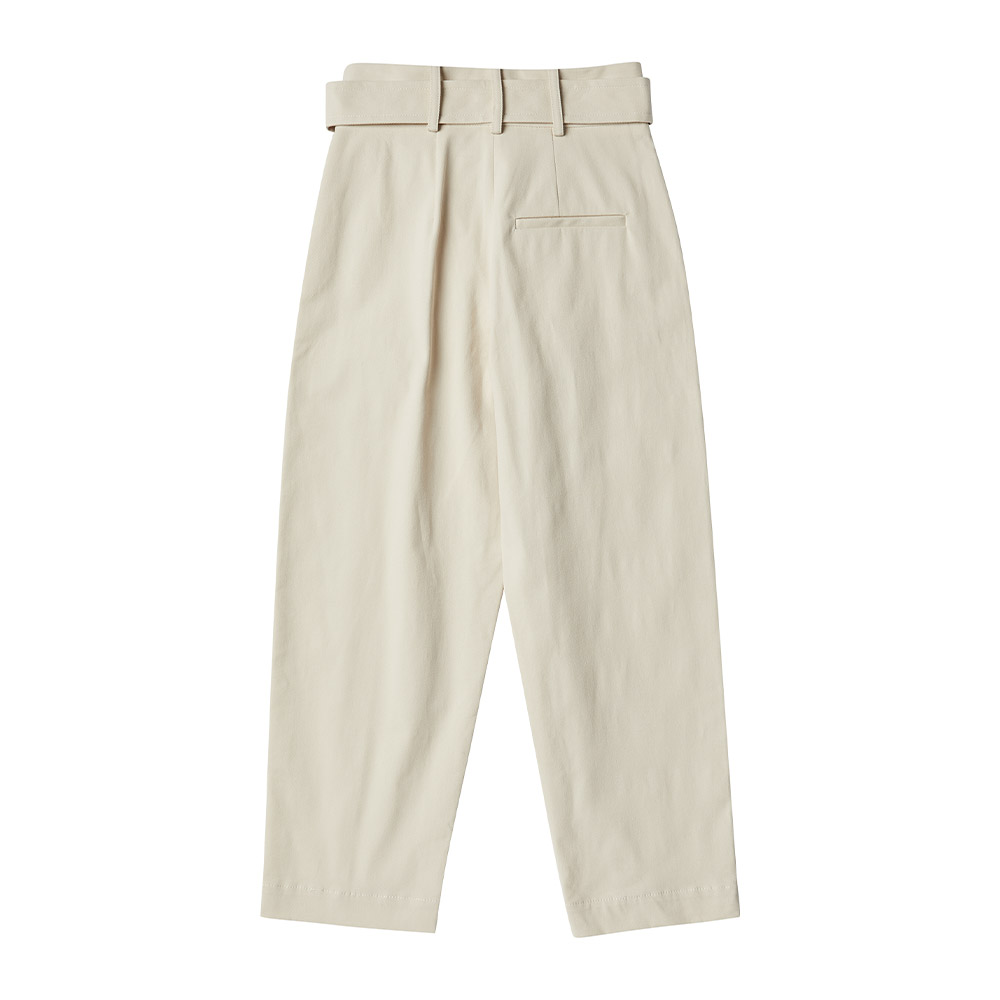 웨이스트 라인 벨트로 사이즈 조절이 용이한 원 핀턱 면 팬츠