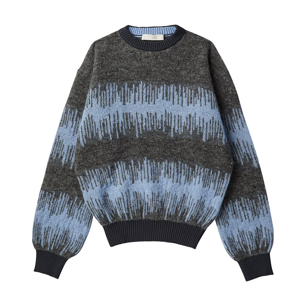 배색 웨이브 패턴이 들어간 알파카 니트