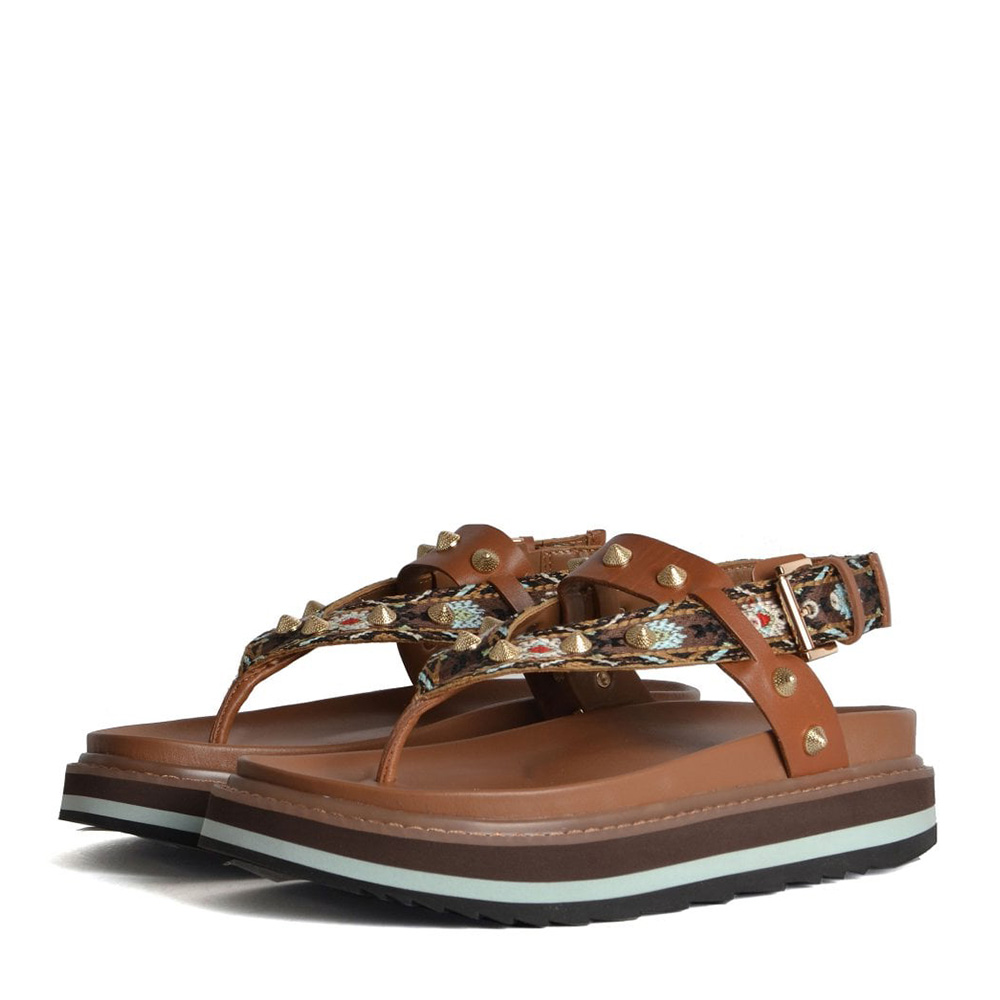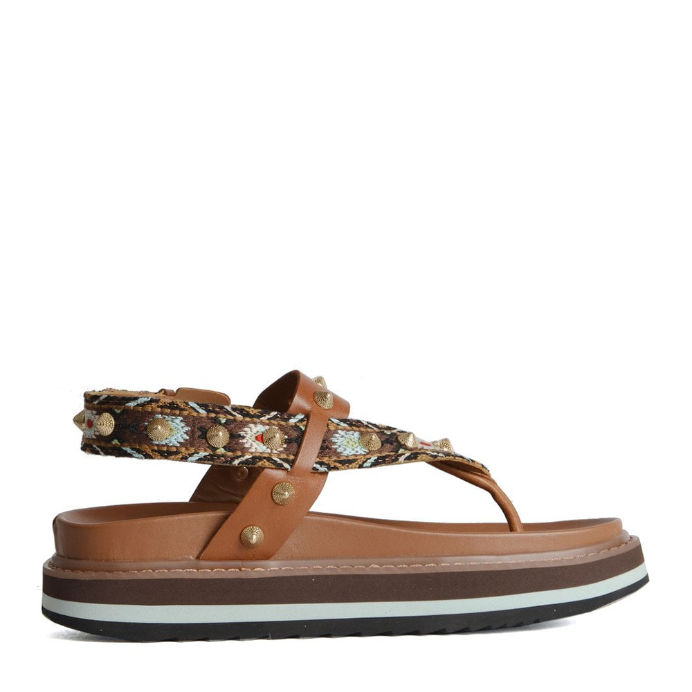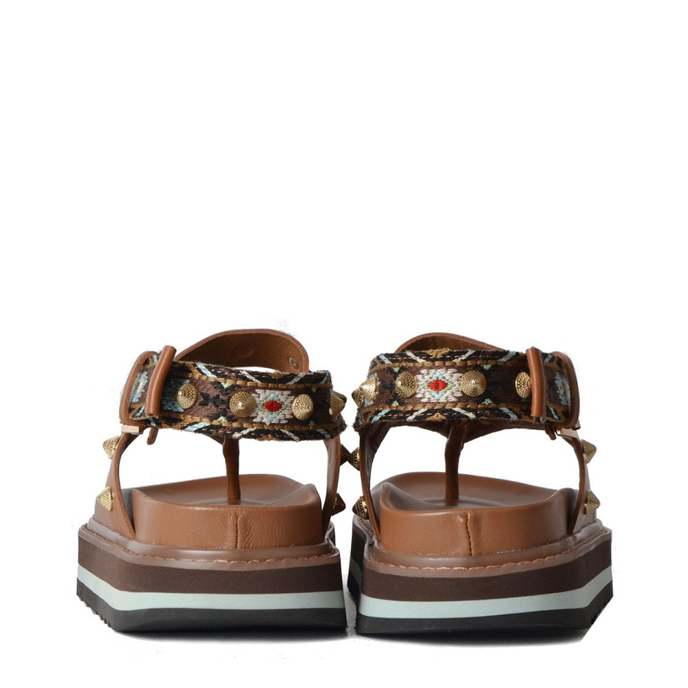 - 에스닉한 프린트가 위빙된 스트랩과 벌키한 더블 레이어 아웃솔과 매치하여 트렌디한 샌들