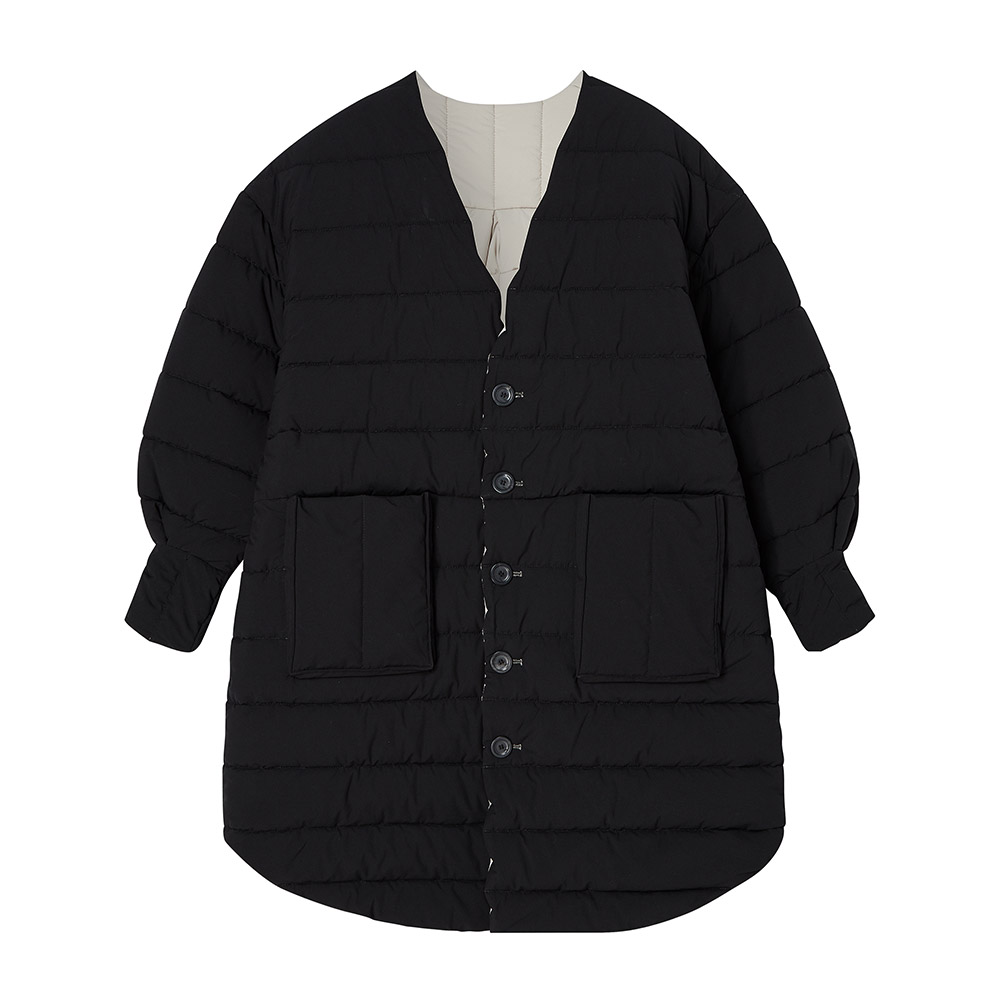 버튼업 리버서블 퀼티드 재킷. 볼륨감있는 슬리브와 프론트 포켓 포인트가 유니크한 아이템