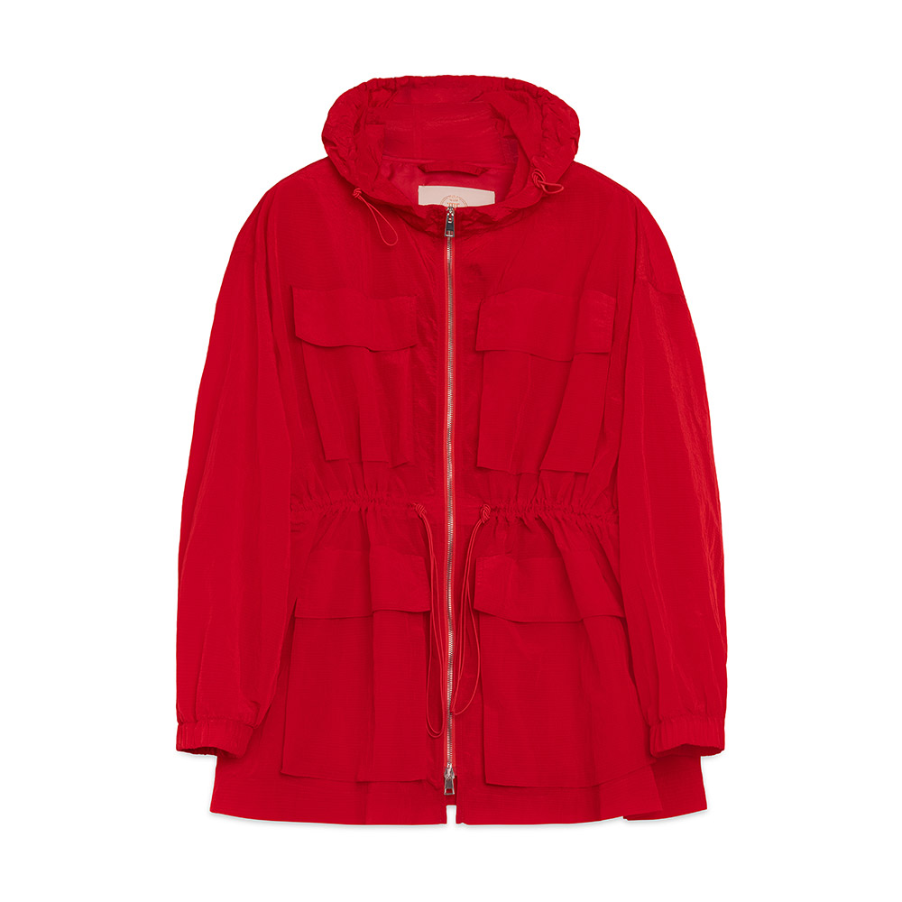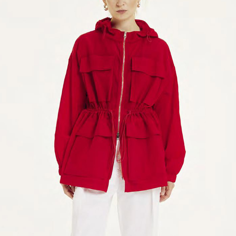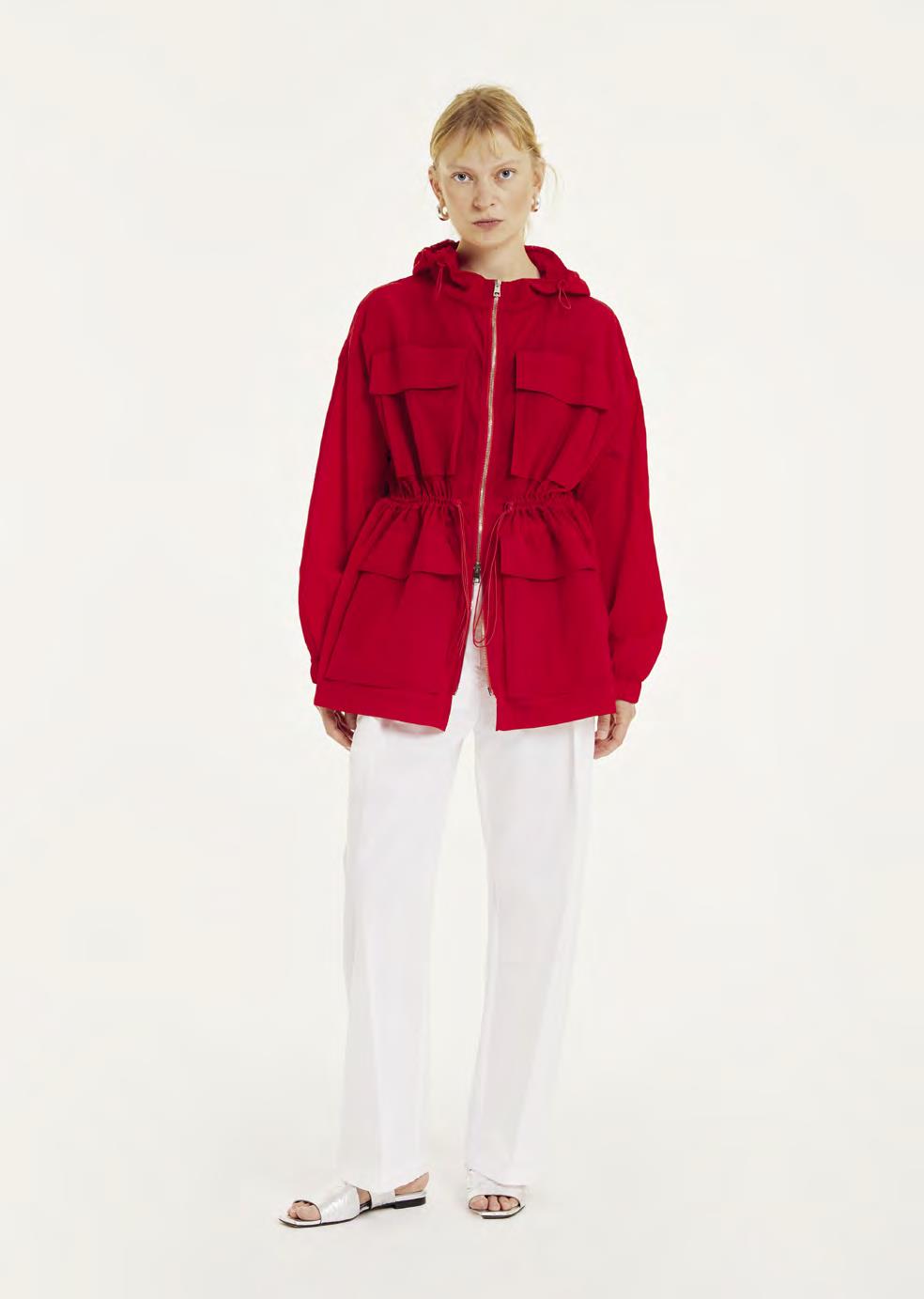 허리 스트링으로 조정 가능한 레드 컬러 점퍼
