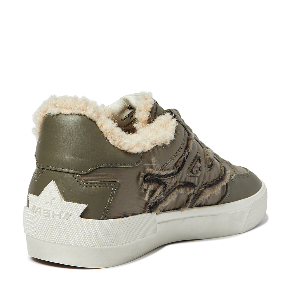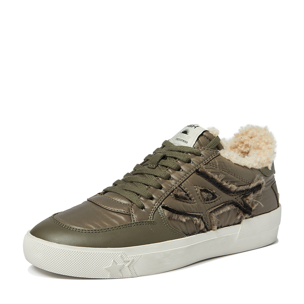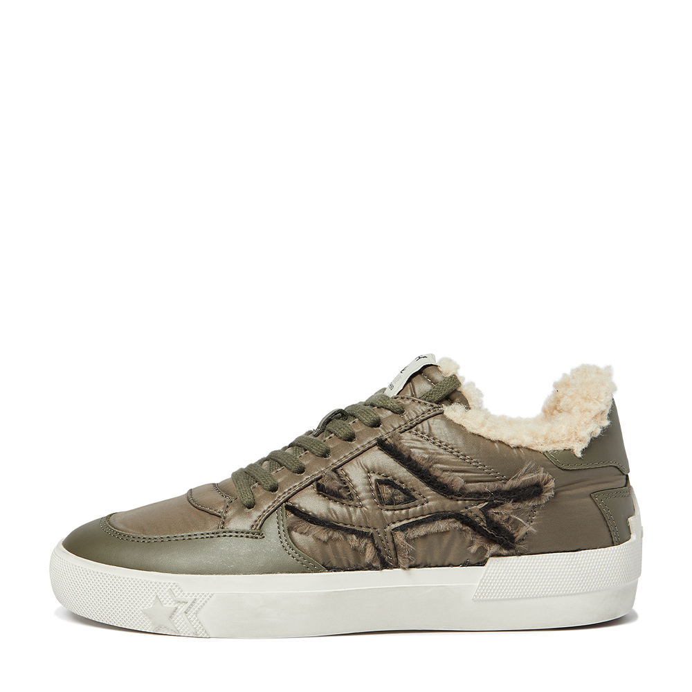 - 아쉬의 A를 형상화한 로고로 은은한 포인트를 준 나일론 소재의 방한 퍼 스니커즈