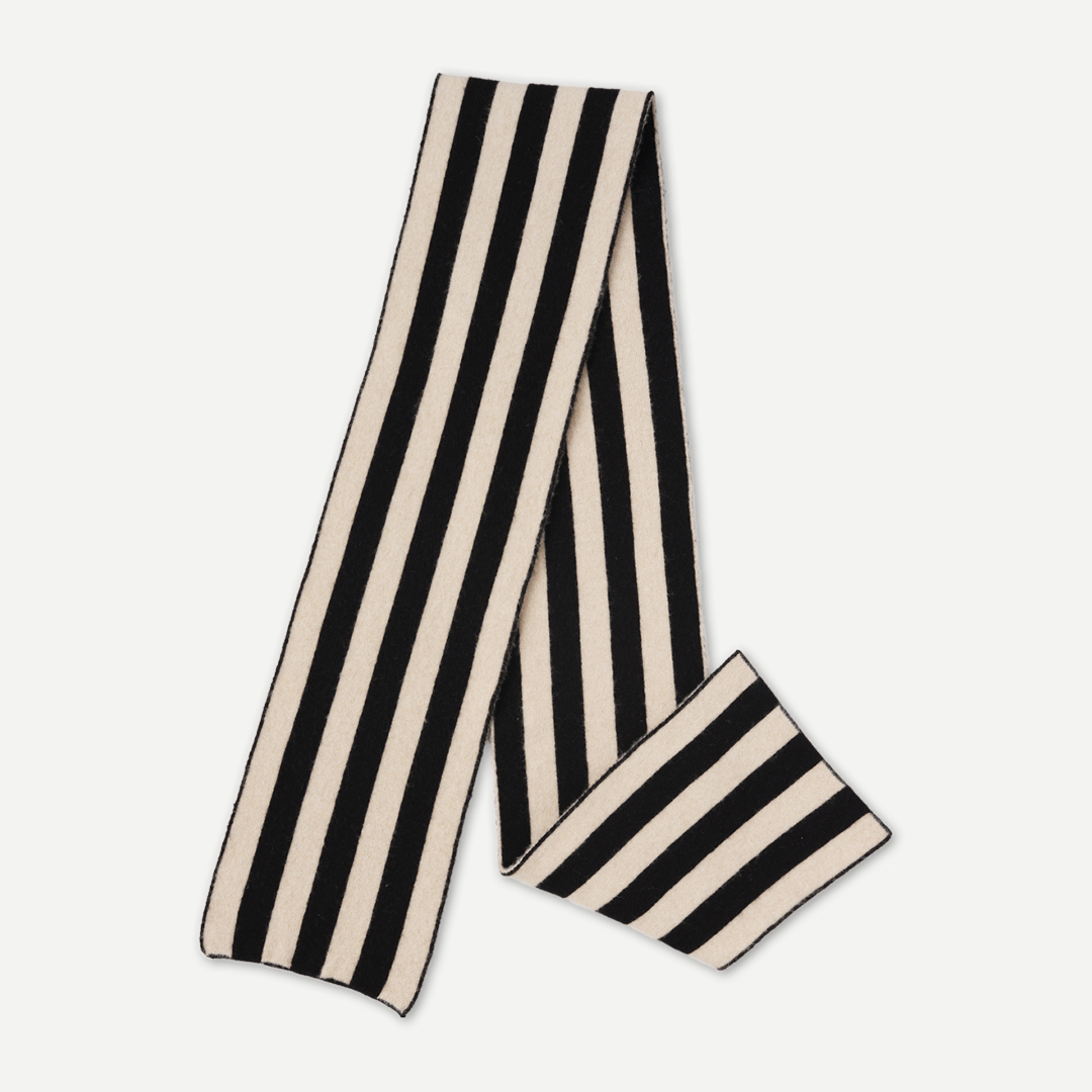 배색 스트라이프의 패턴이 대조되는 부드러운 스카프. 가볍게 목에 두르기 좋은 기장과 두께의 아이템. 스코틀랜드의 니트웨어 브랜드인 조 고든의 유니섹스 제품