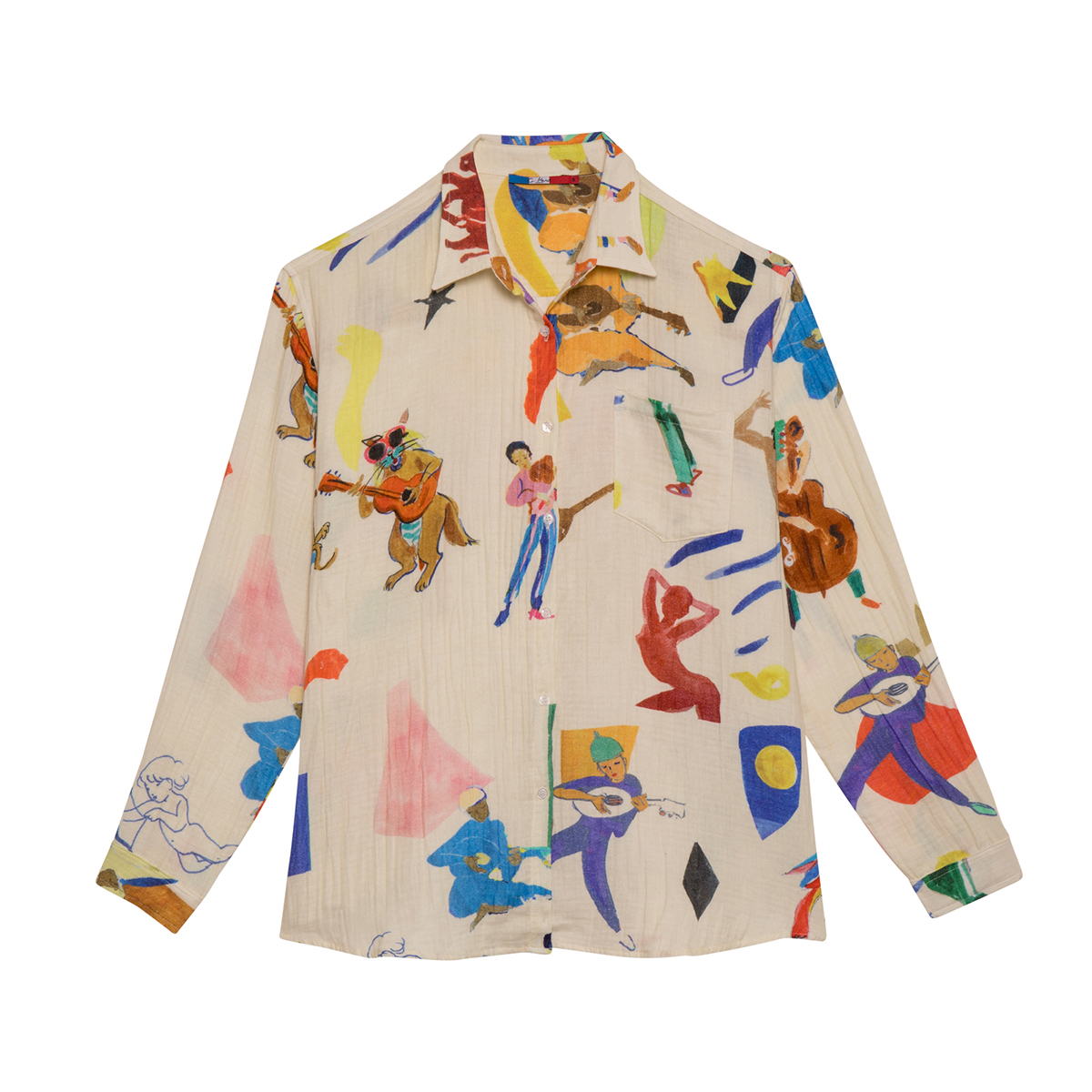 지케로 특유의 독특하고 감각적인 프린트가 돋보이는 거즈 코튼 셔츠