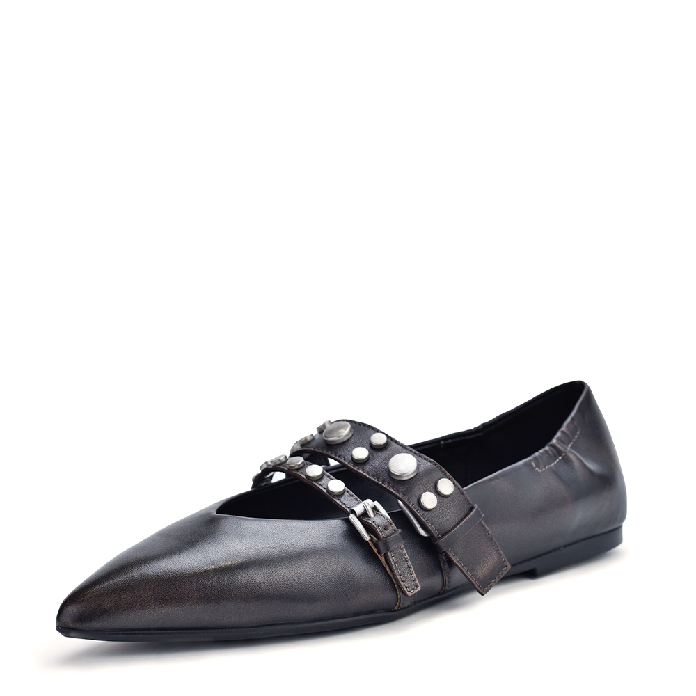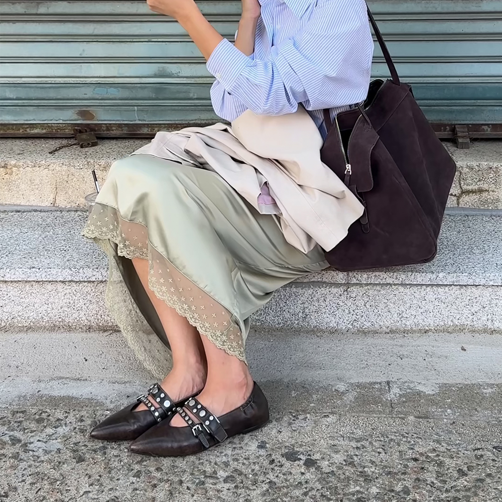 - 날렵한 앞코와 슬림한 바디의 레더 플랫 슈즈