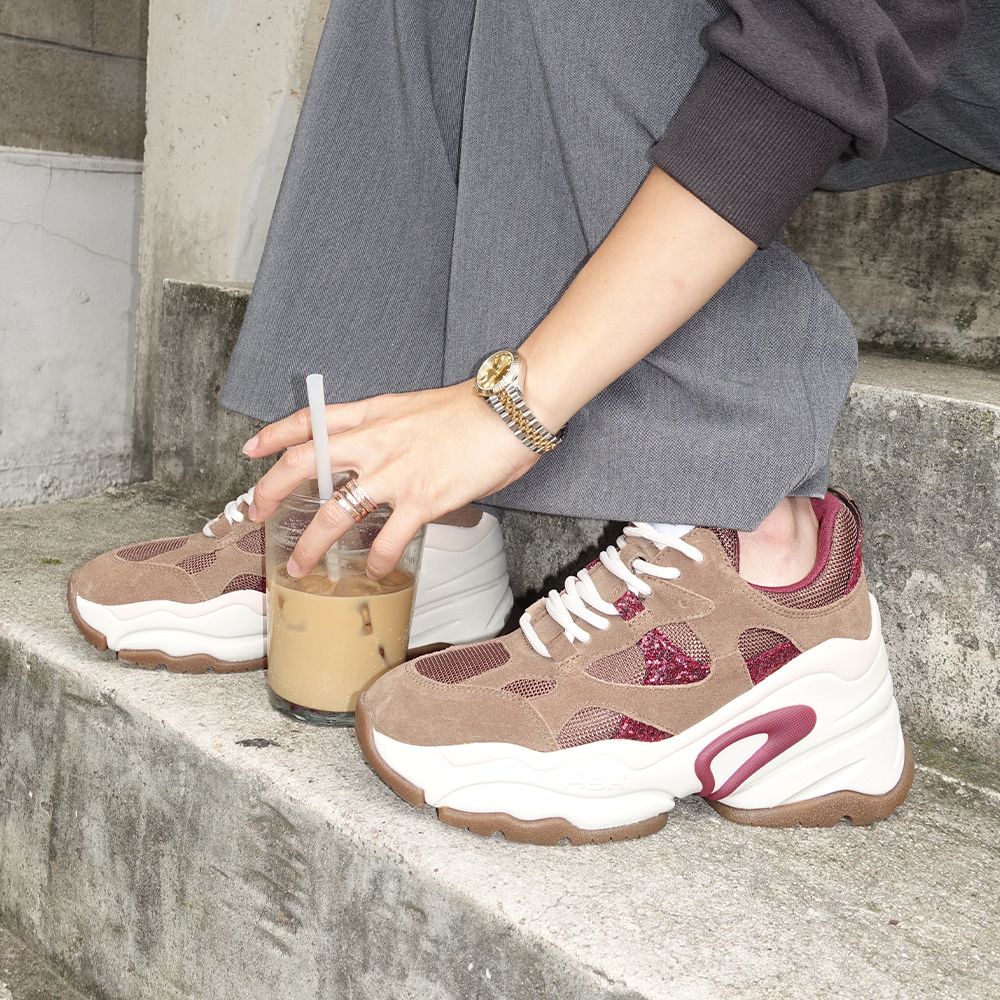 - 구조적인 바디에 가벼운 웨지 아웃솔 콤비의 힐 스니커즈이며 꾸준한 인기를 끌고 있는 아쉬 베스트 셀러