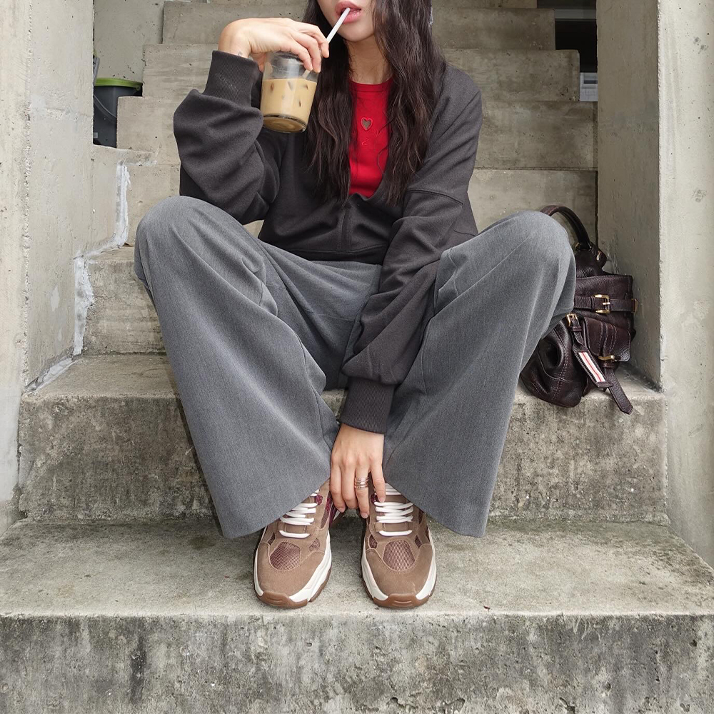 - 90mm의 웨지 경량힐로 안정적이고 편하게 롱한 다리라인을 연출할 수 있는 힐 스니커즈