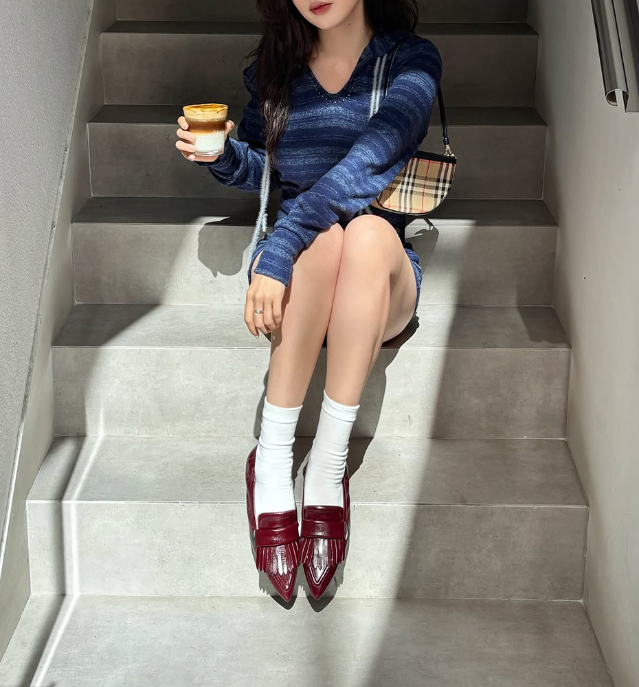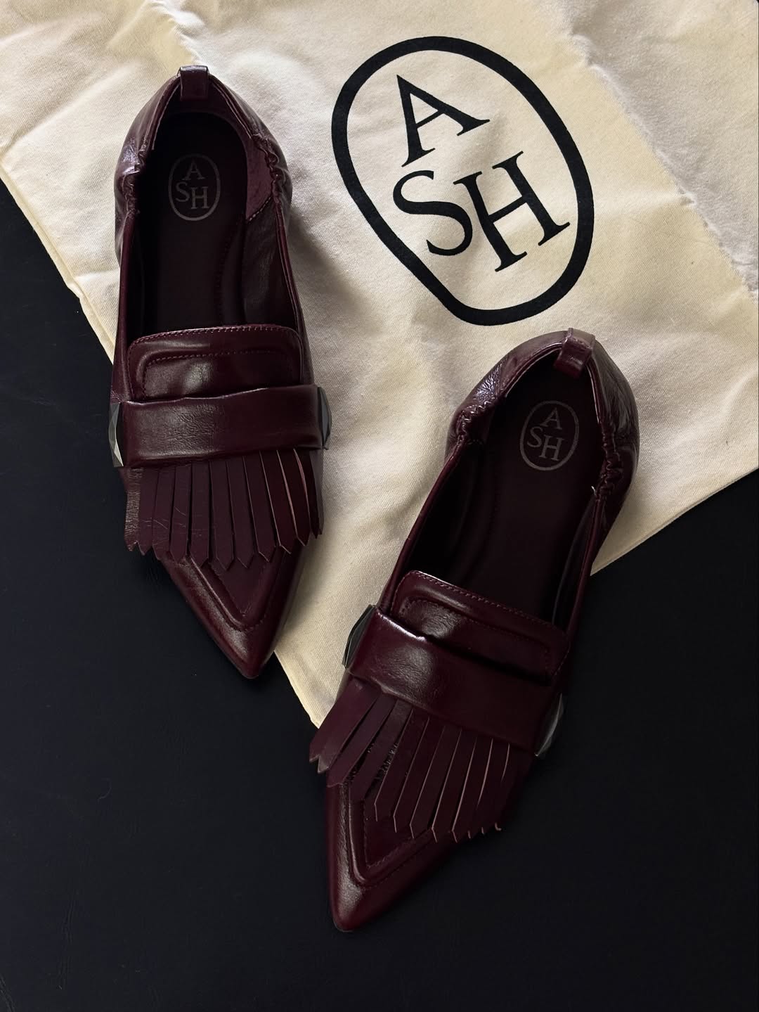 - 날렵한 앞코와 슬림한 바디의 레더 플랫 슈즈