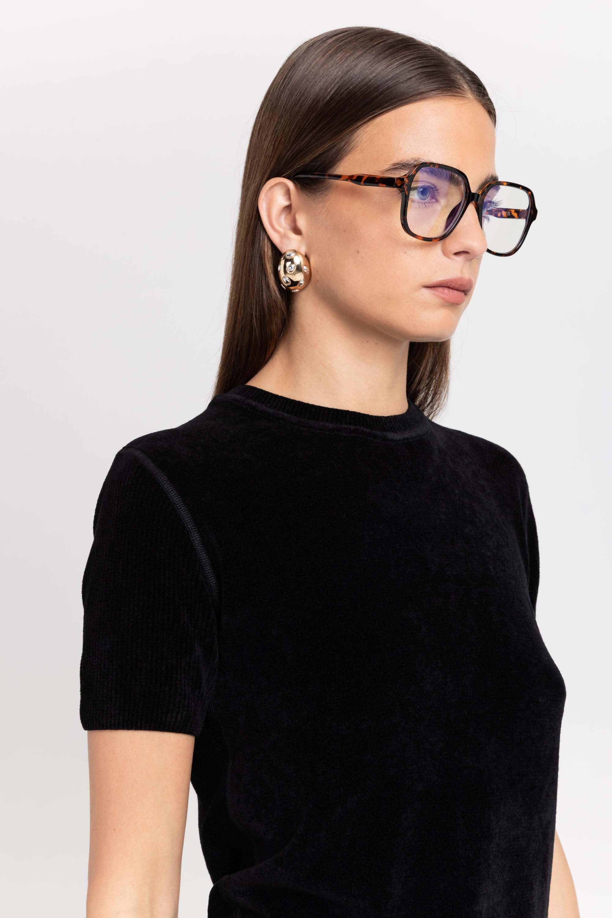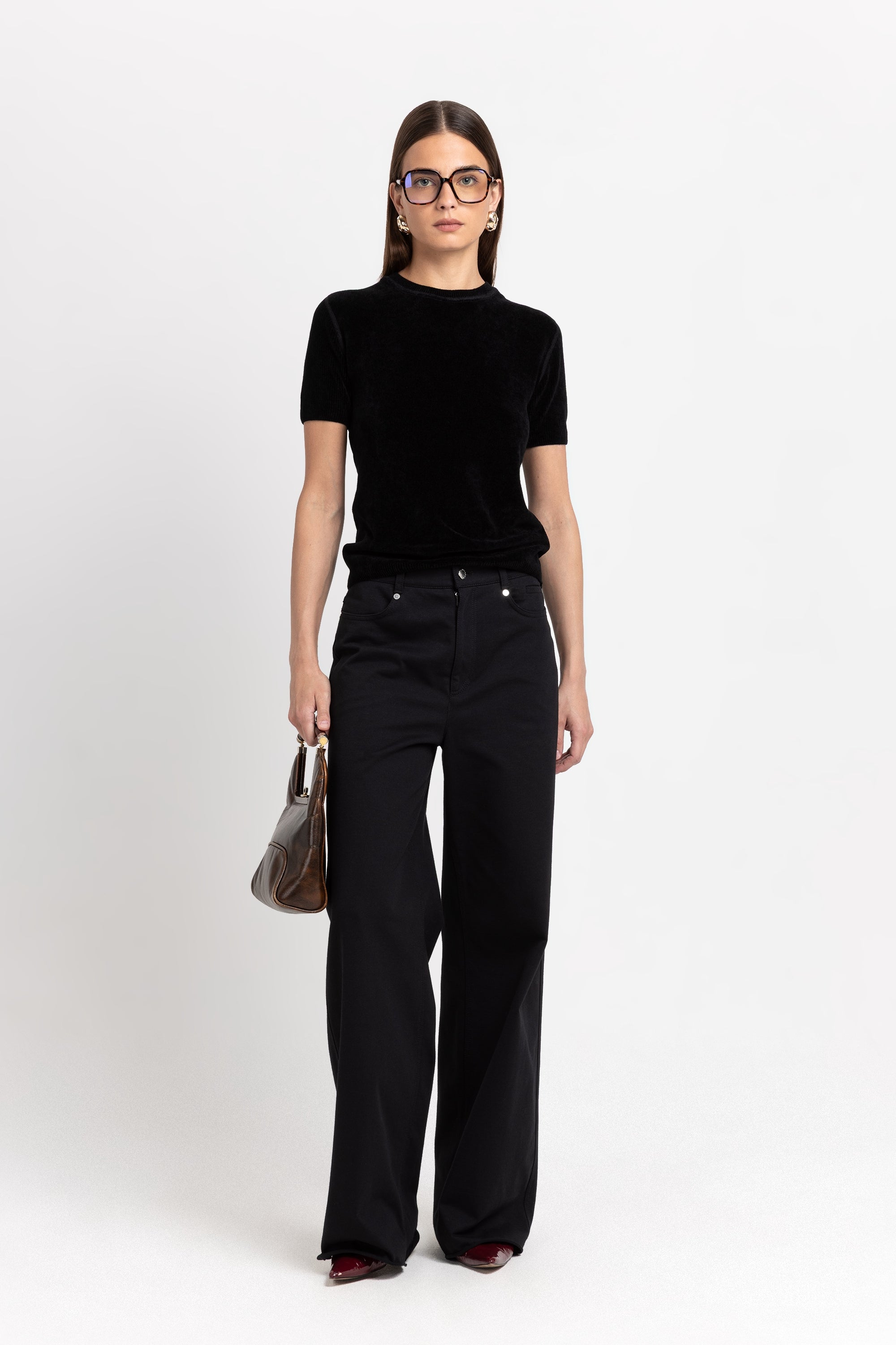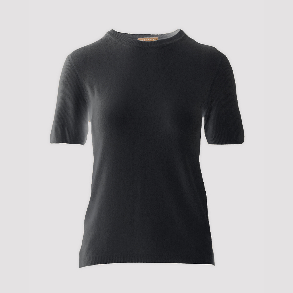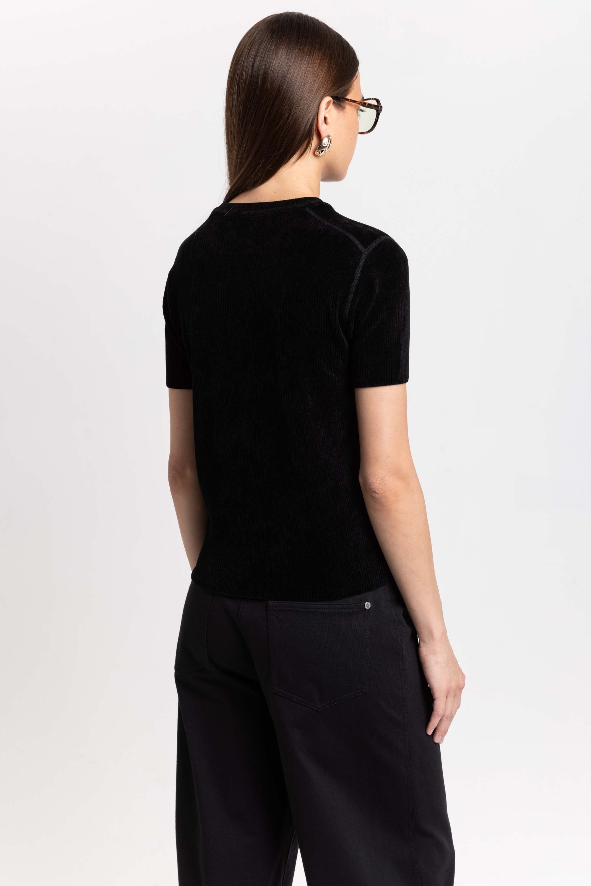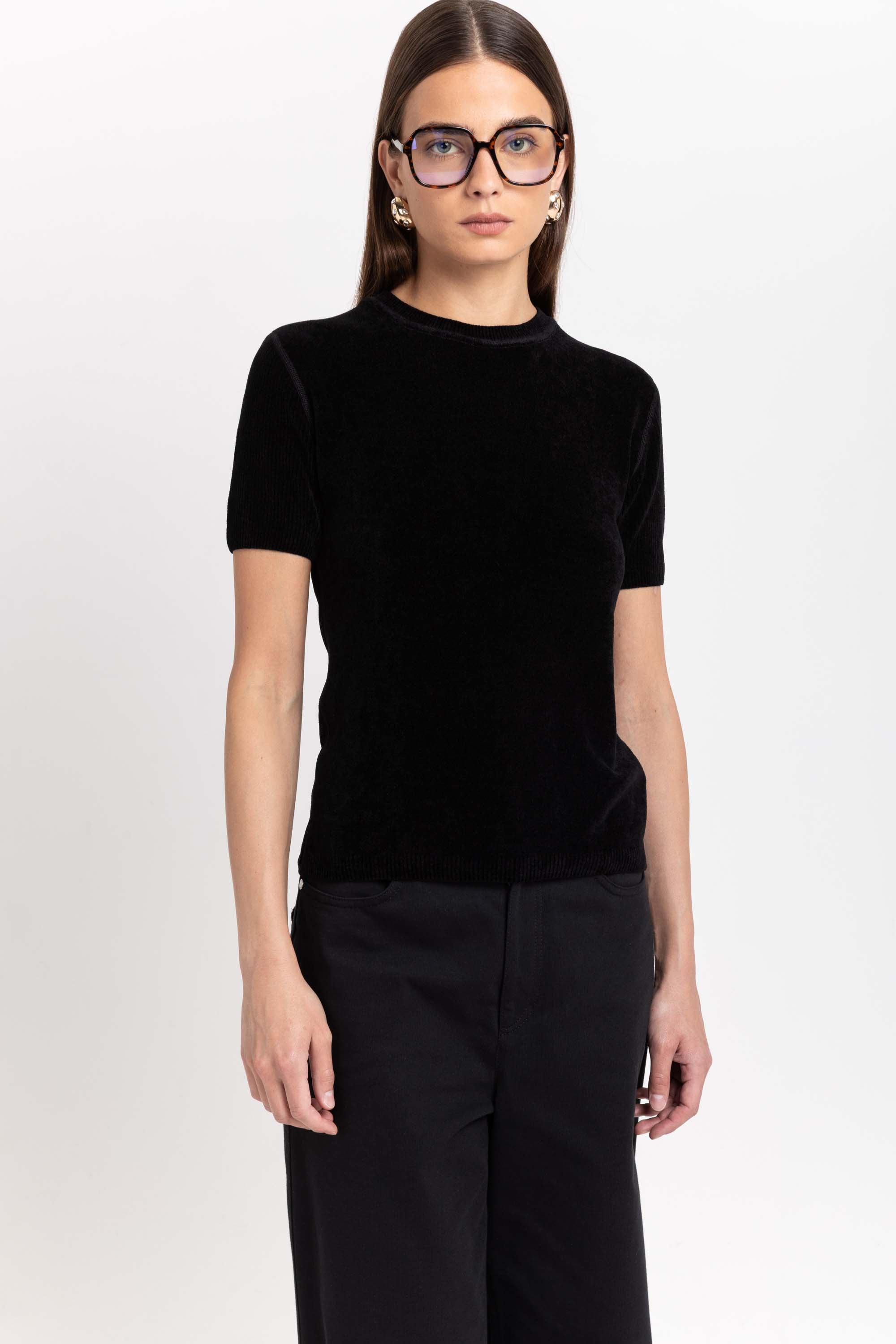 벨벳 터치감의 니트 반팔 탑