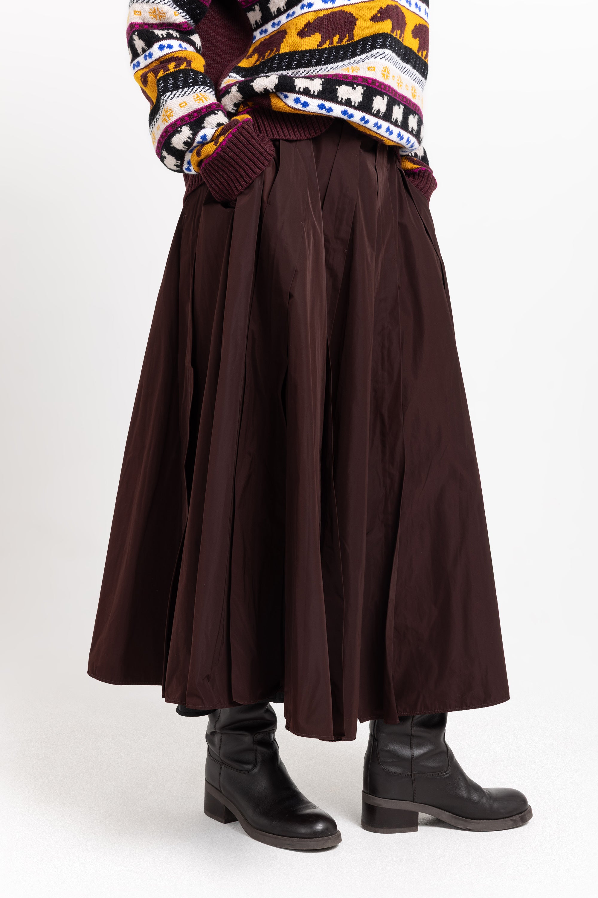 방수 소재의 플리츠 풀 스커트