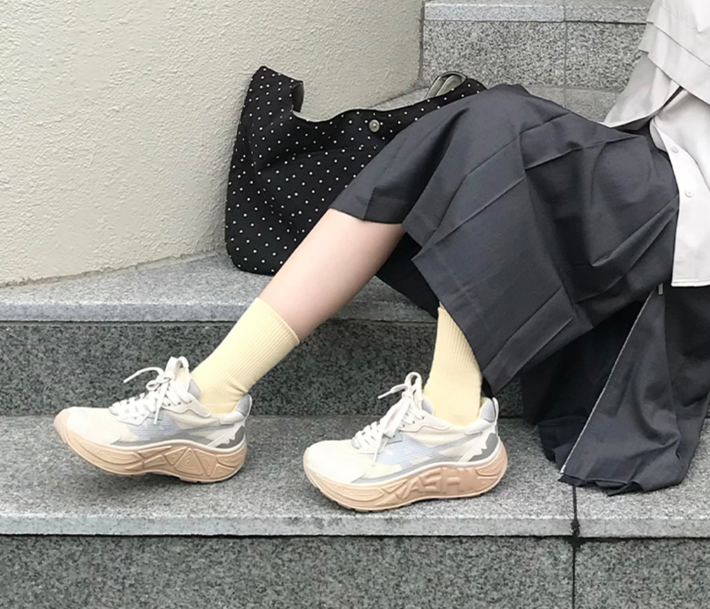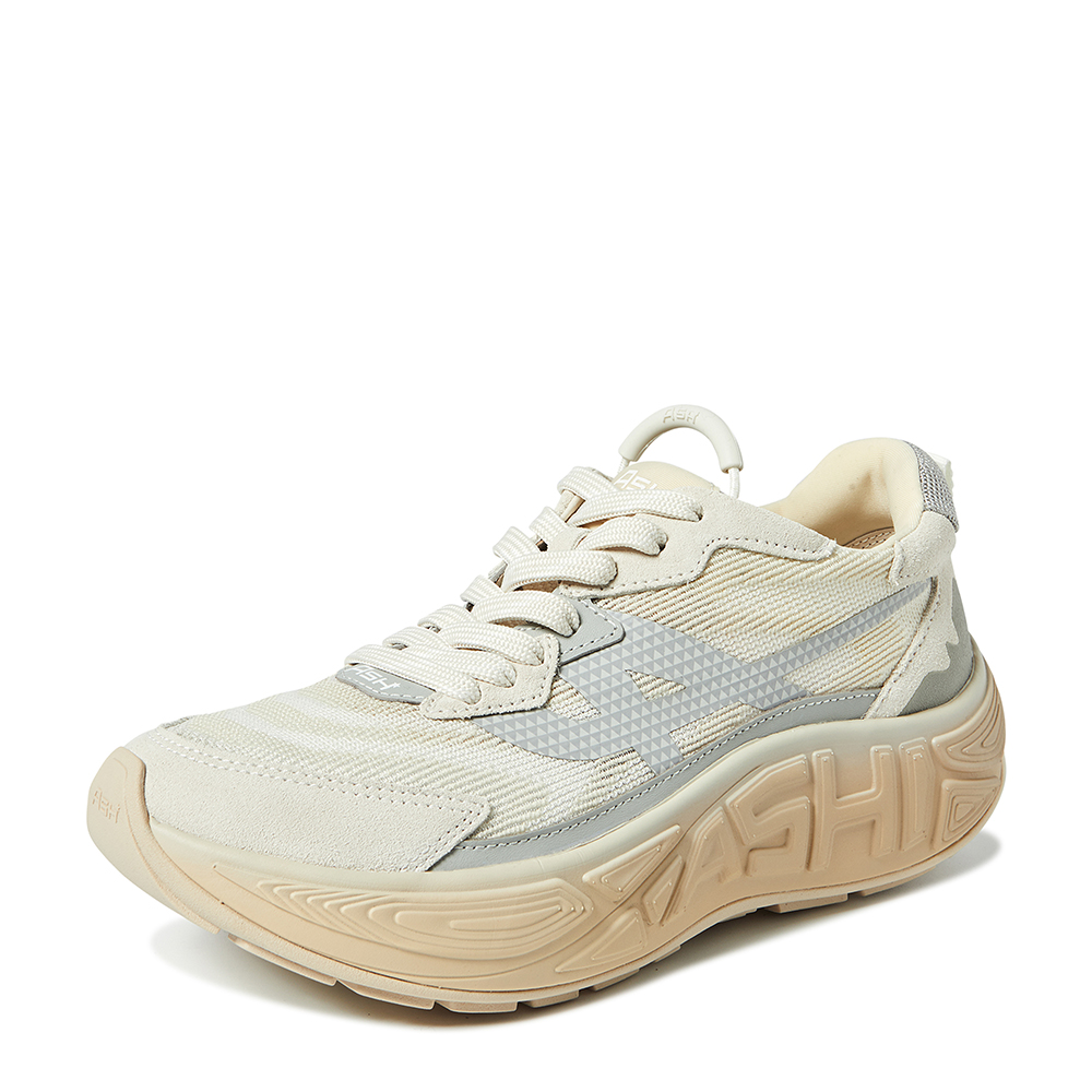 - 니트와 스웨이드 믹스 어퍼에 볼드한 쿠셔닝 아웃솔로 편안함과 스타일을 모두 갖춘 아쉬의 뉴 스니커즈라인