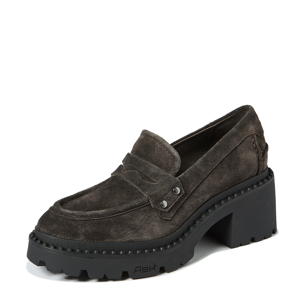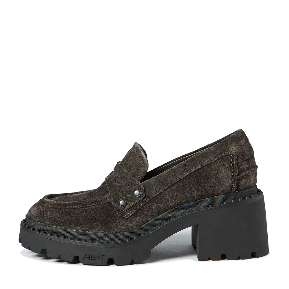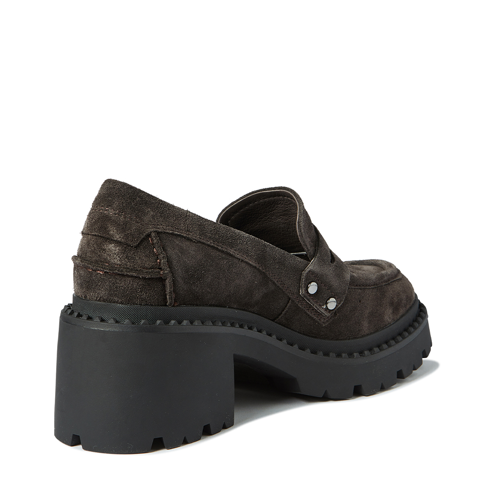 - 러버 아웃솔과 스퀘어 스터드 디테일이 돋보이는 클래식한 디자인의 기본 스웨이드 로퍼