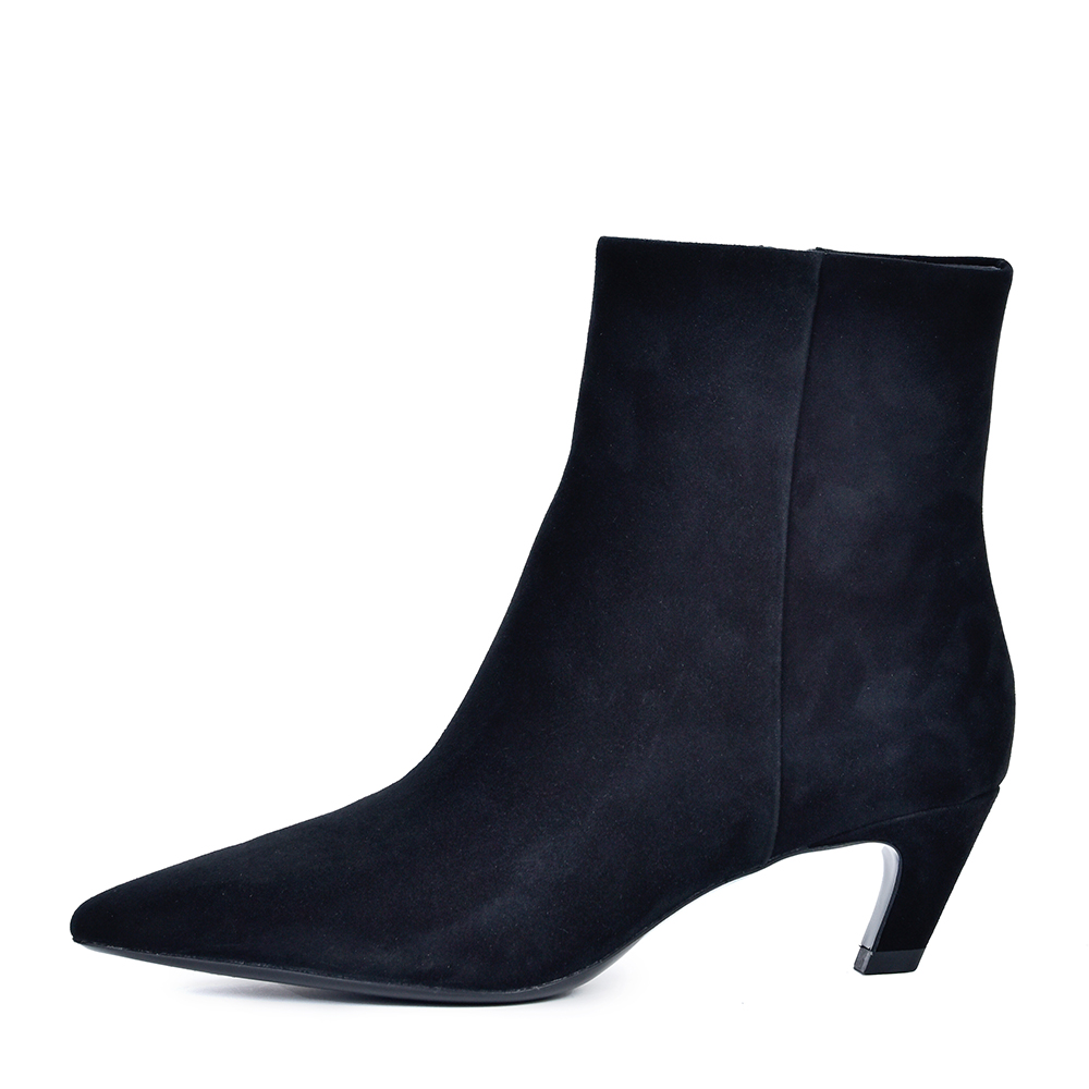 - 슬림하게 뻗은 앞코 라인과 안정적인 미들 힐이 조화를 이루어, 세련된 스타일과 편안한 착화감을 동시에 제공하는 앵클 부츠