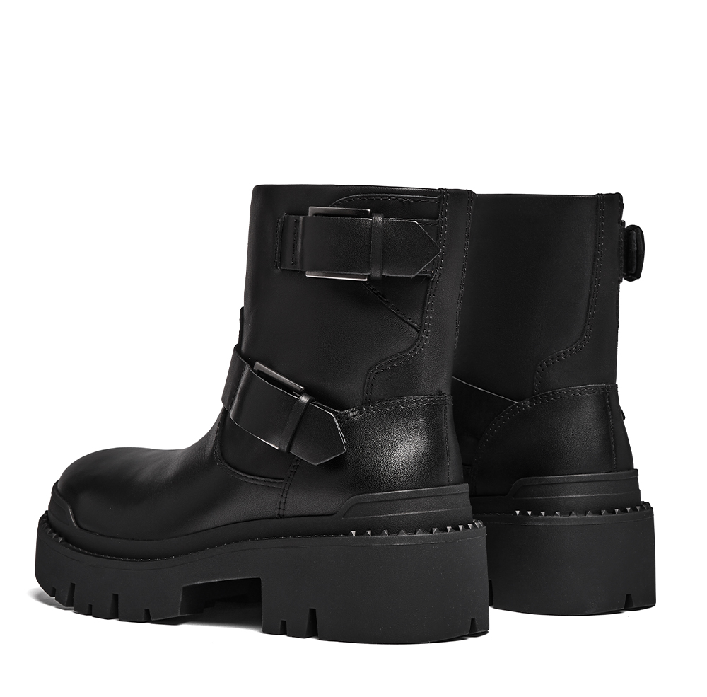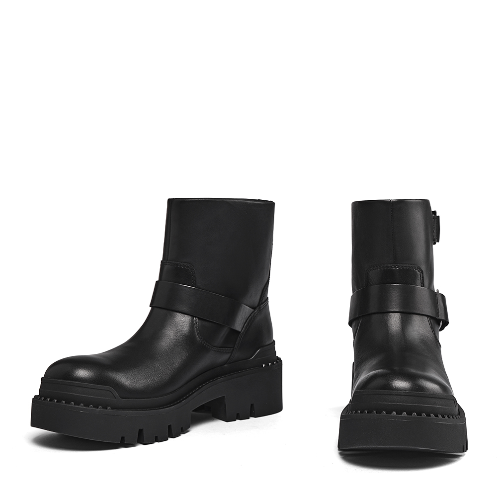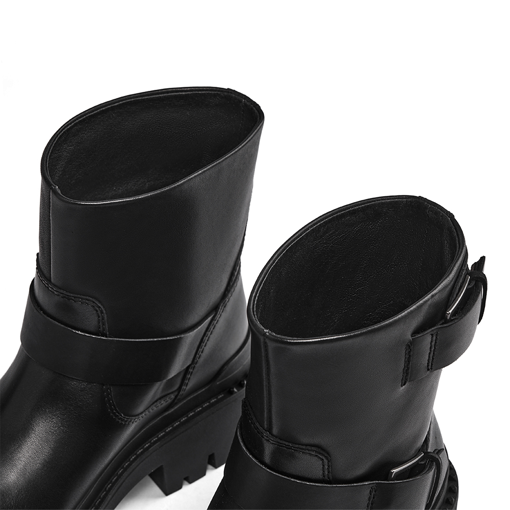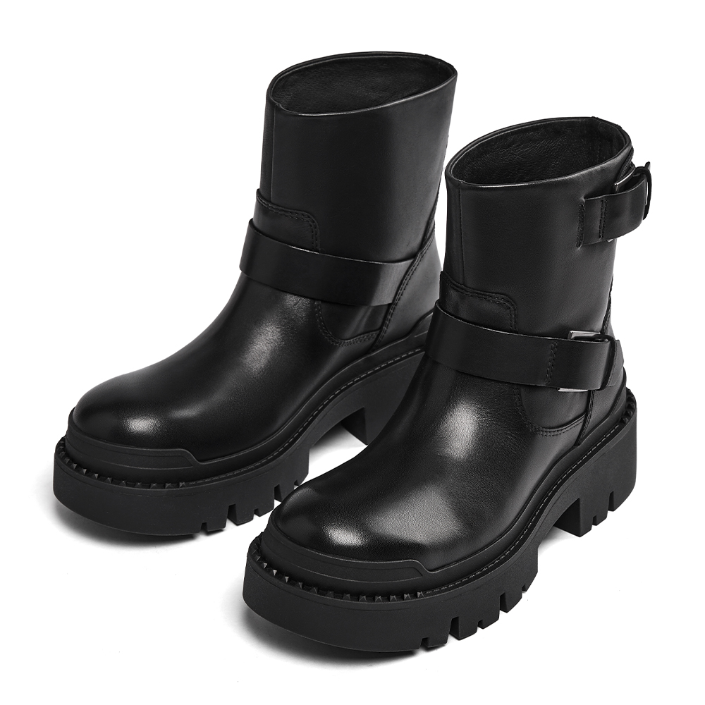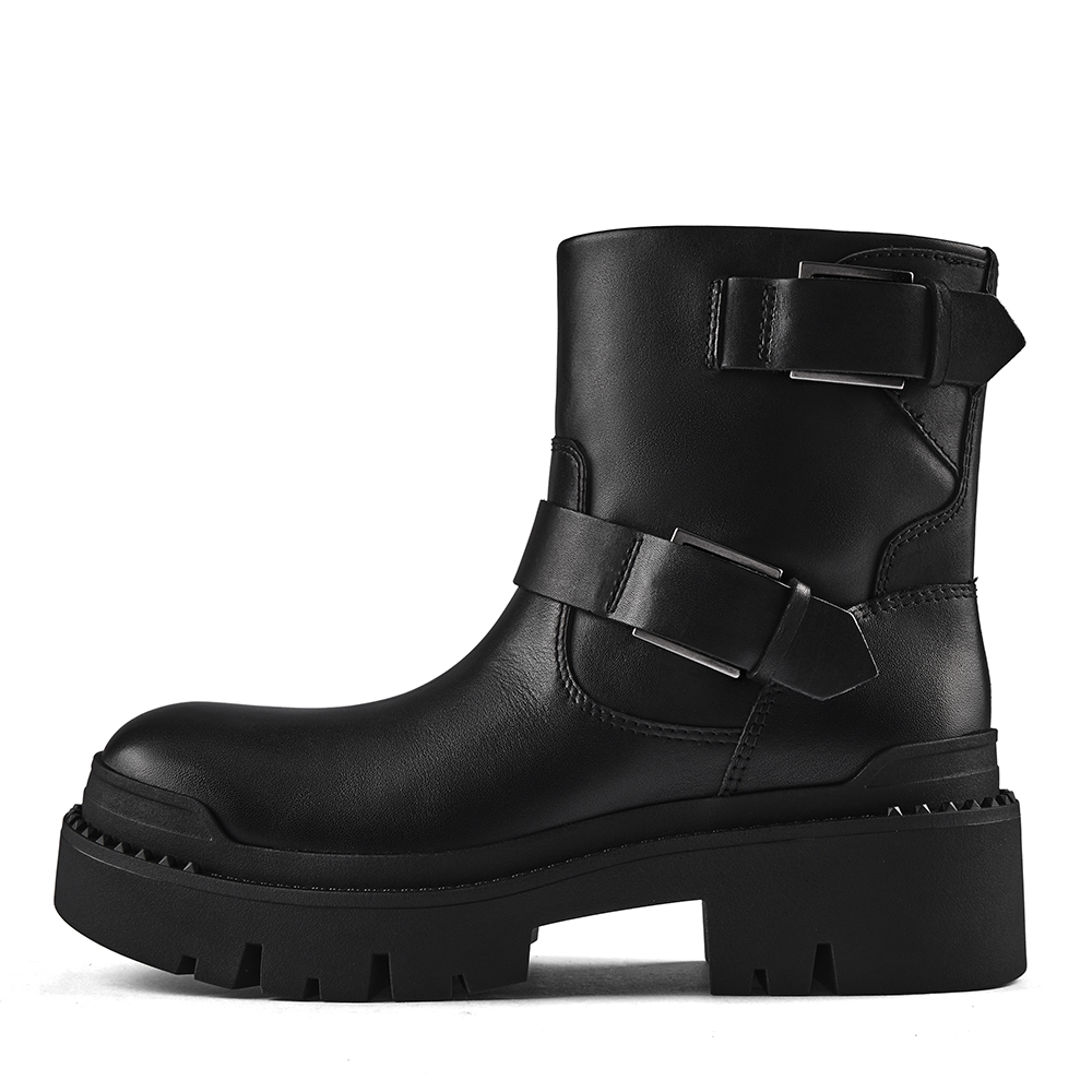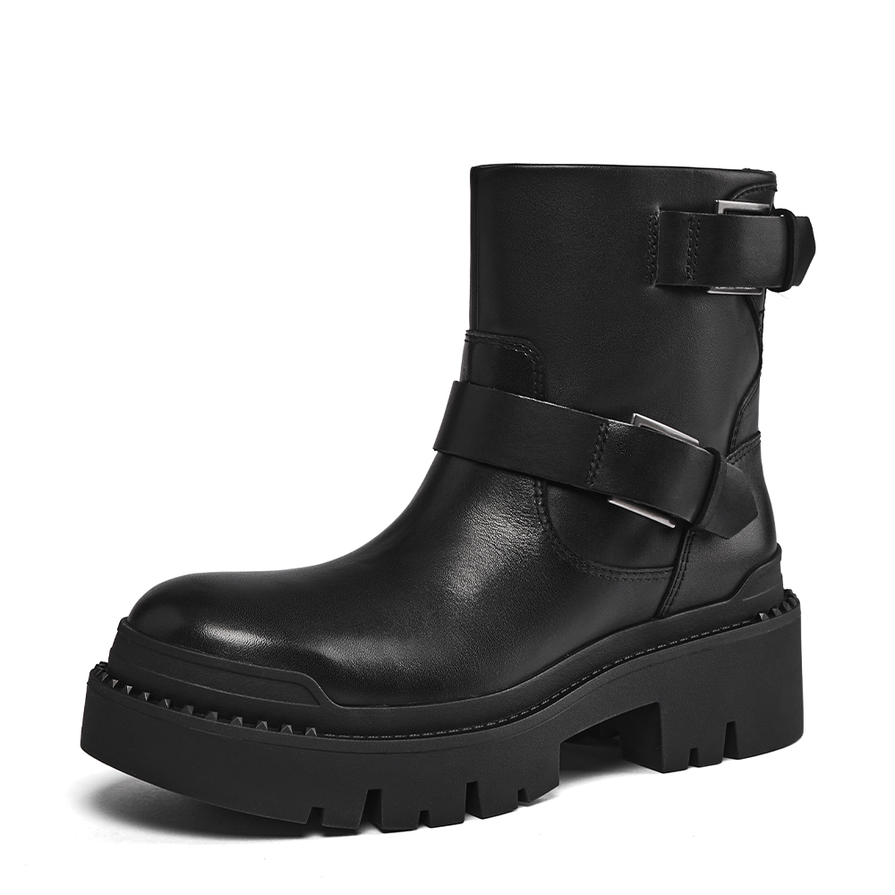 - 사이드를 장신한 두개의 버클은 건메탈 컬러로 장식되어 과하지 않게 블랙톤의 어퍼와 멋스럽게 어우러짐