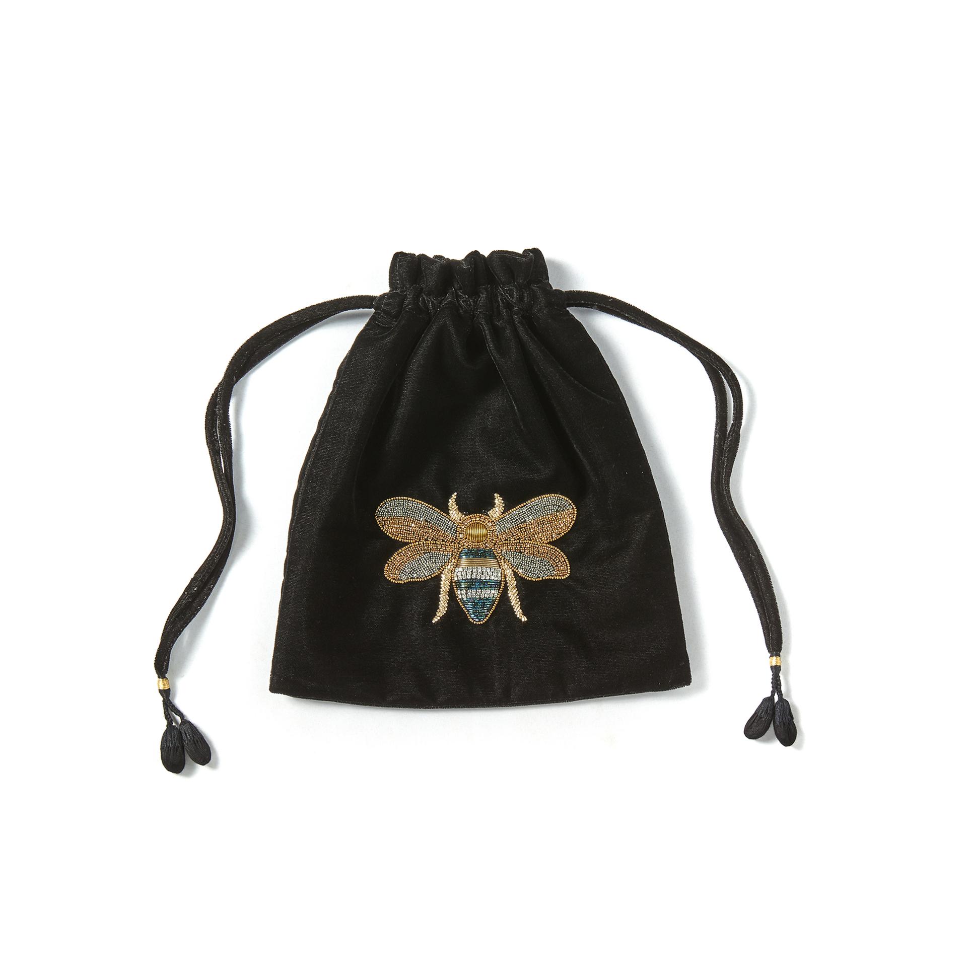 비즈로 자수된 BIG BEE 벨벳 다용도 파우치