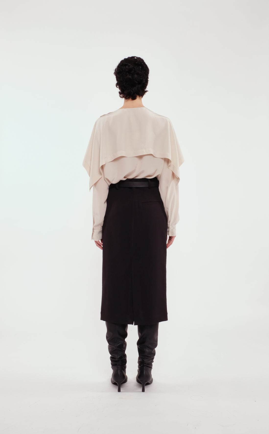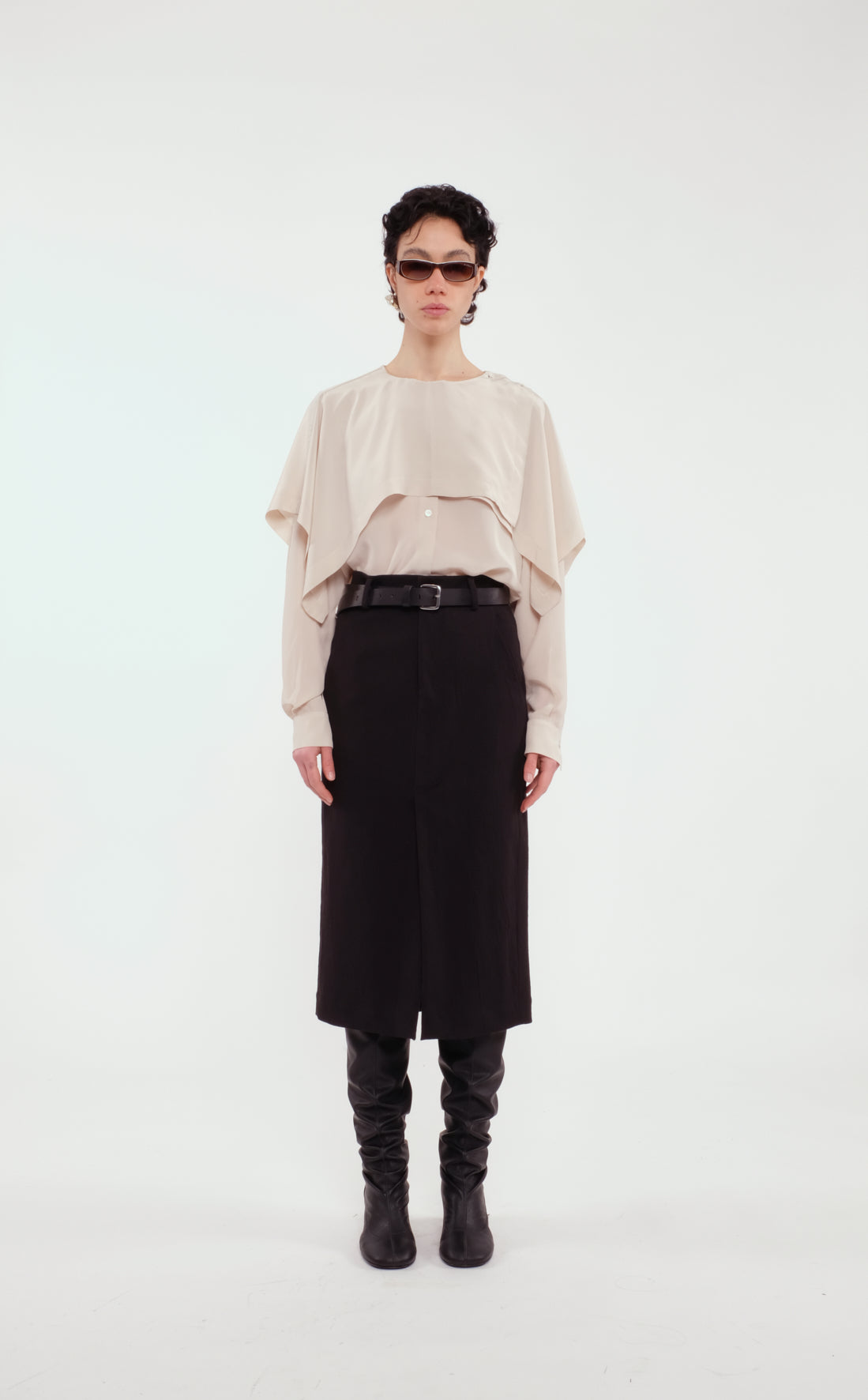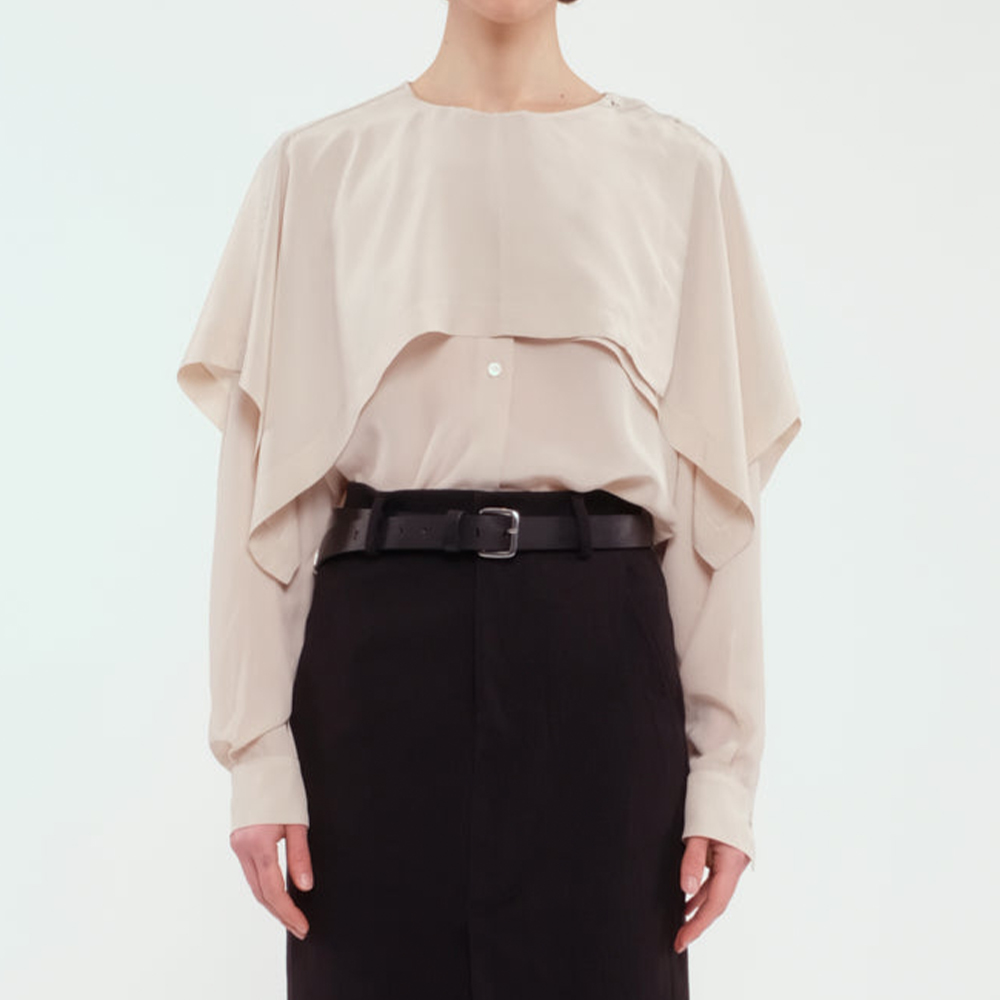 넥라인의 케이프 레이어가 유니크한 셔츠