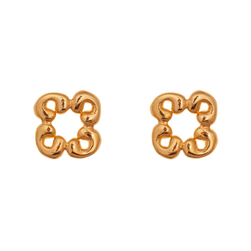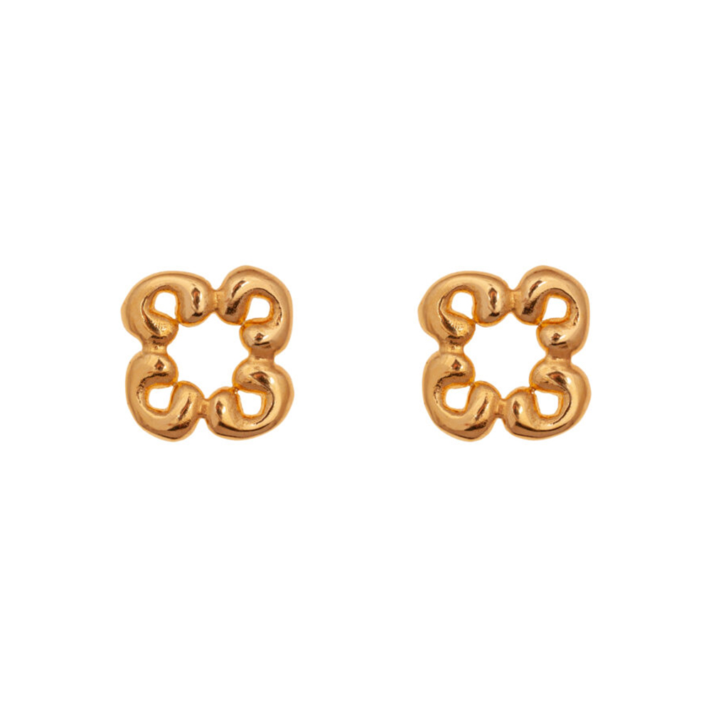 기하학적인 꽃잎 모양의 귀걸이로 페미닌한 무드의 제품