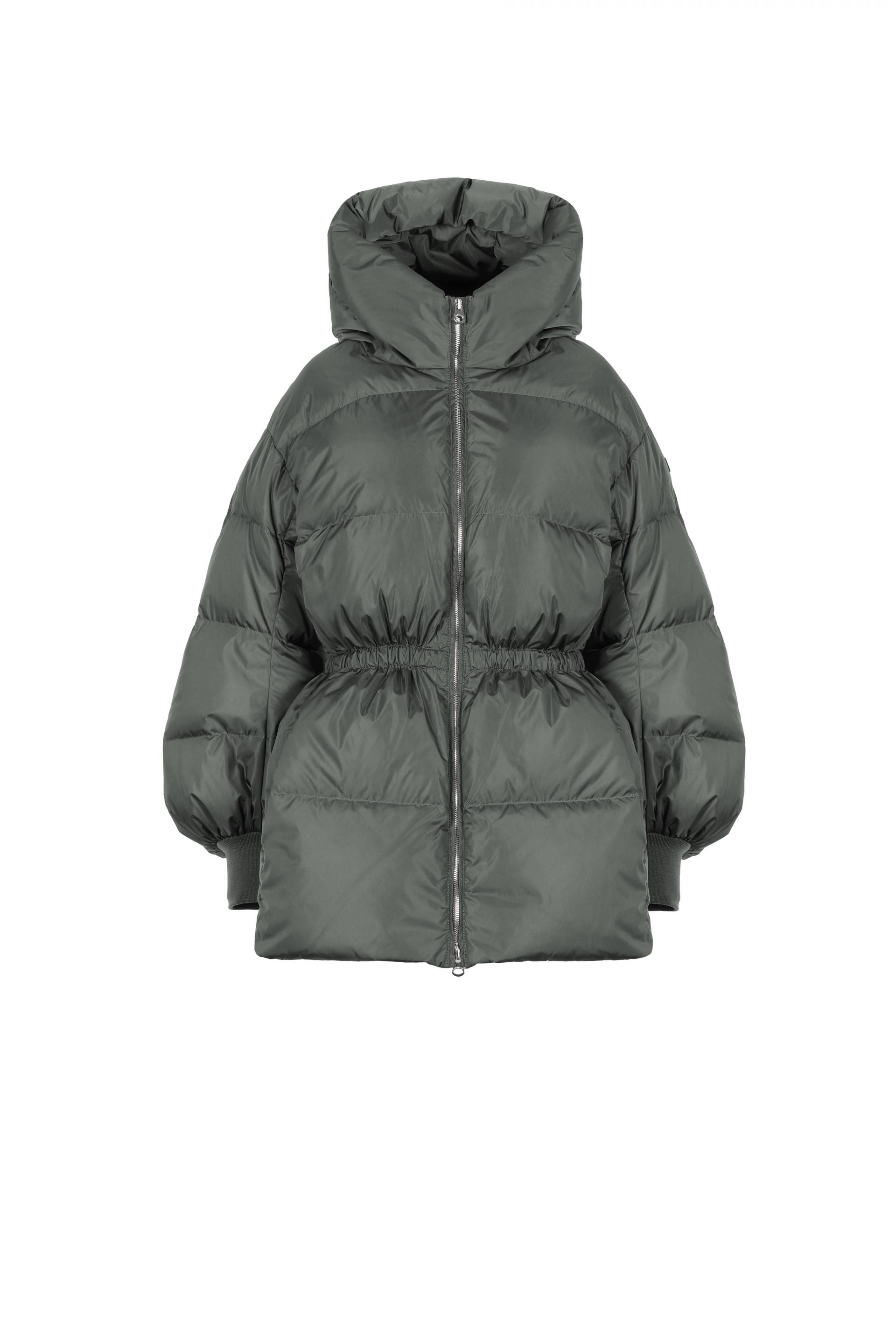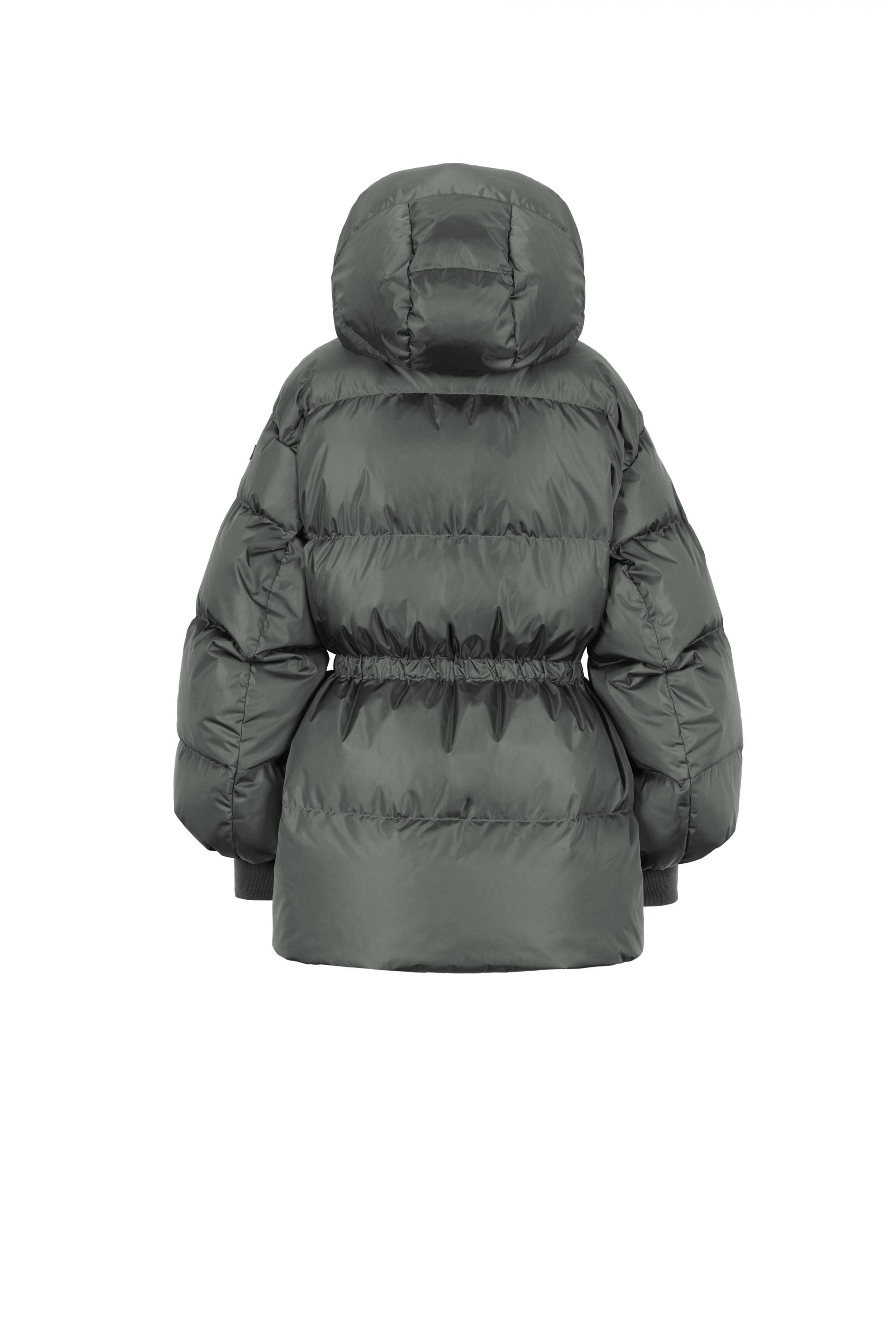 생활 방수가 가능한 발수가공 된 이탈리아산 고밀도 나일론 소재로 제작된 다운 재킷. 솜털과 깃털 90/10 비율의 RDS 인증 덕다운 충전재가 사용되어 가볍지만 우수한 보온성을 제공하는 제품. 여성스러운 실루엣으로 디자인되었으며, 허리 안쪽에는 스트링이 내장되어 취향에 따라 실루엣을 조절할 수 있음. 풍성하고 부드러운 다운 후드가 더해져 따뜻함을 한층 높였으며, 사선 포켓과 니트 커프스, 실버 톤의 메탈 투웨이 지퍼로 마감해 세련된 포인트를 더함.