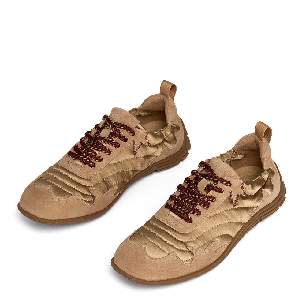 - 입체적인 퀼팅 디테일에 은은한 광택의 새틴 소재를 믹스하여 고급스럽고 감각적인 포인트를 더한 스니커즈