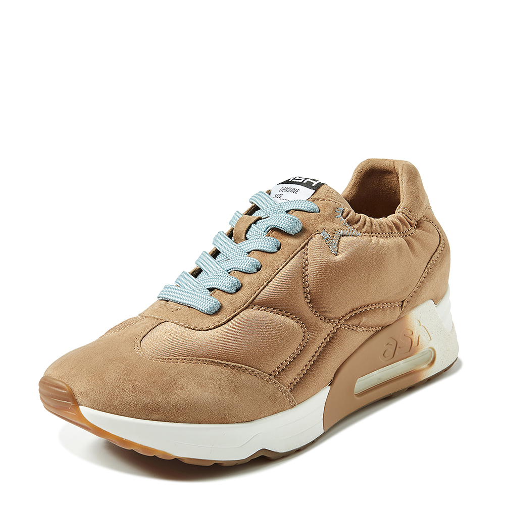 - 부드러운 캐시미어 텍스처와 은은한 광택의 샤이니 라이크라 소재를 조합해 트렌디한 무드를 완성한 에어힐 스니커즈