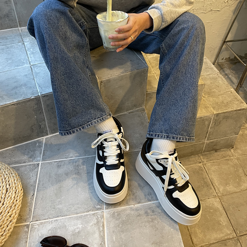 - 6.5cm 플랫폼 아웃솔의 레더 스니커즈