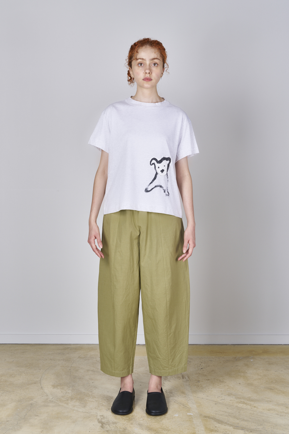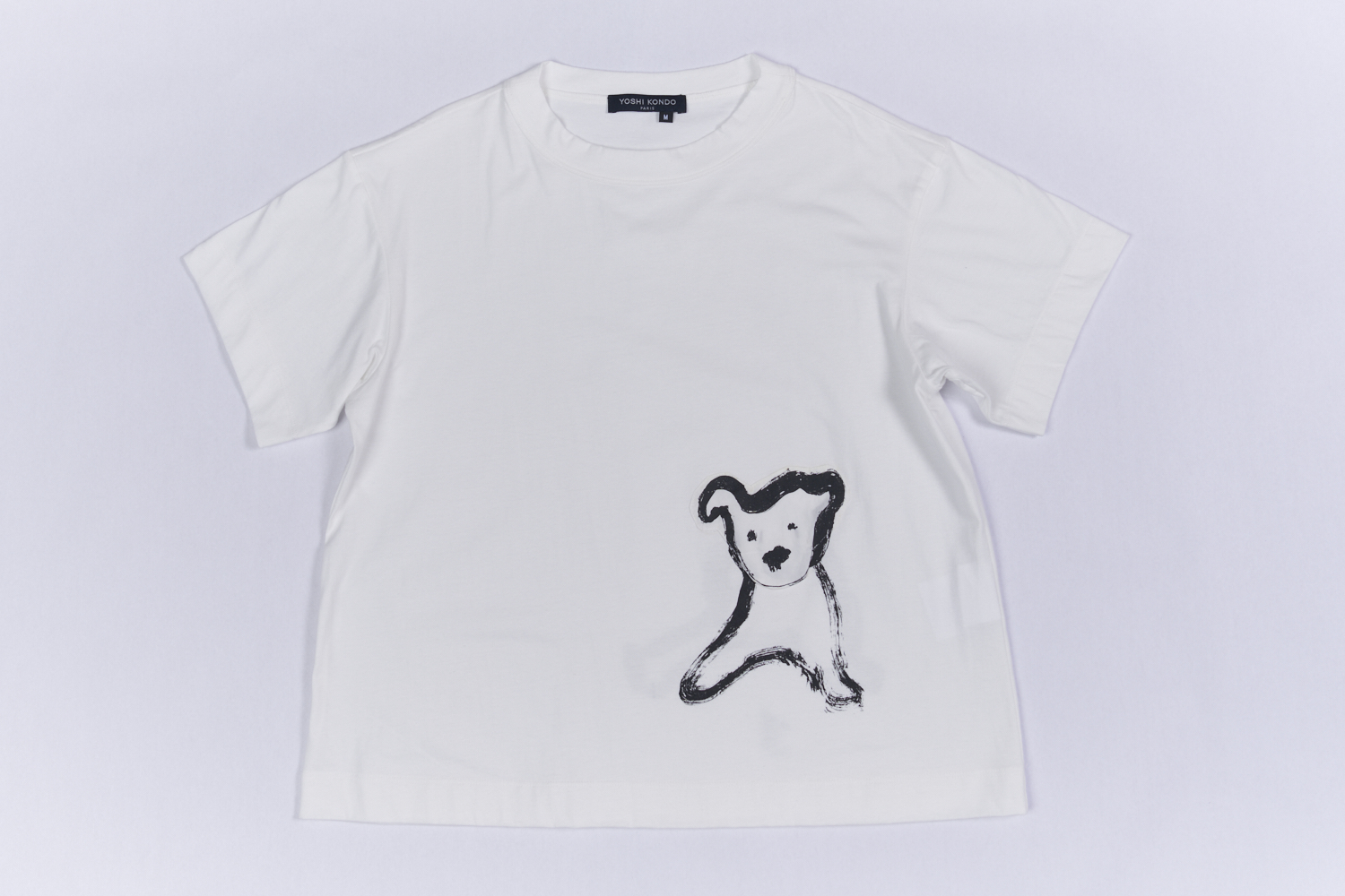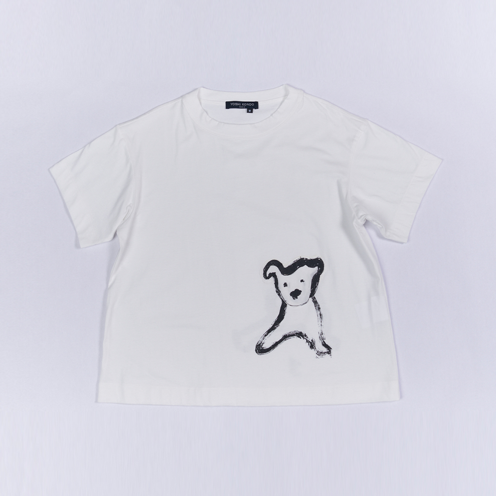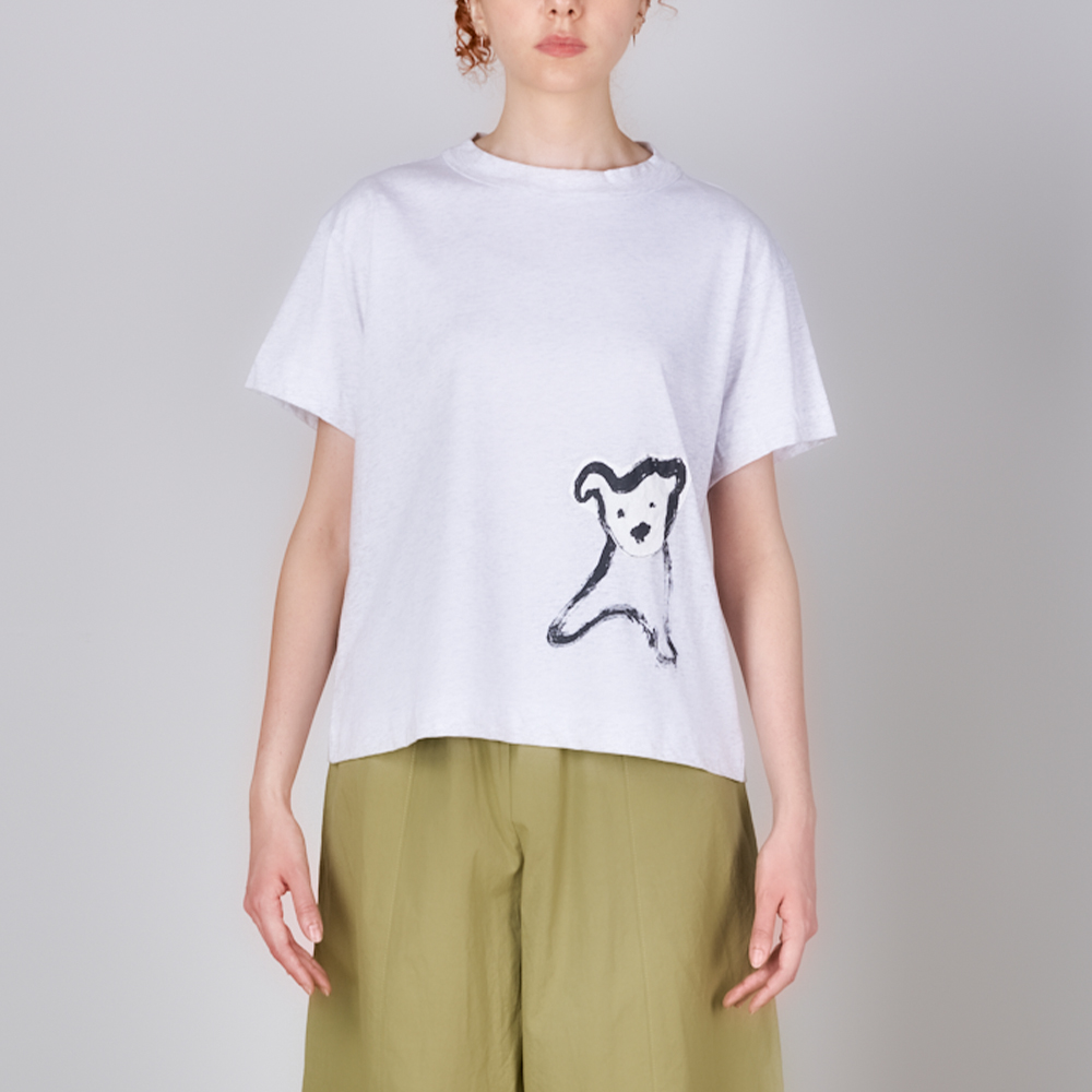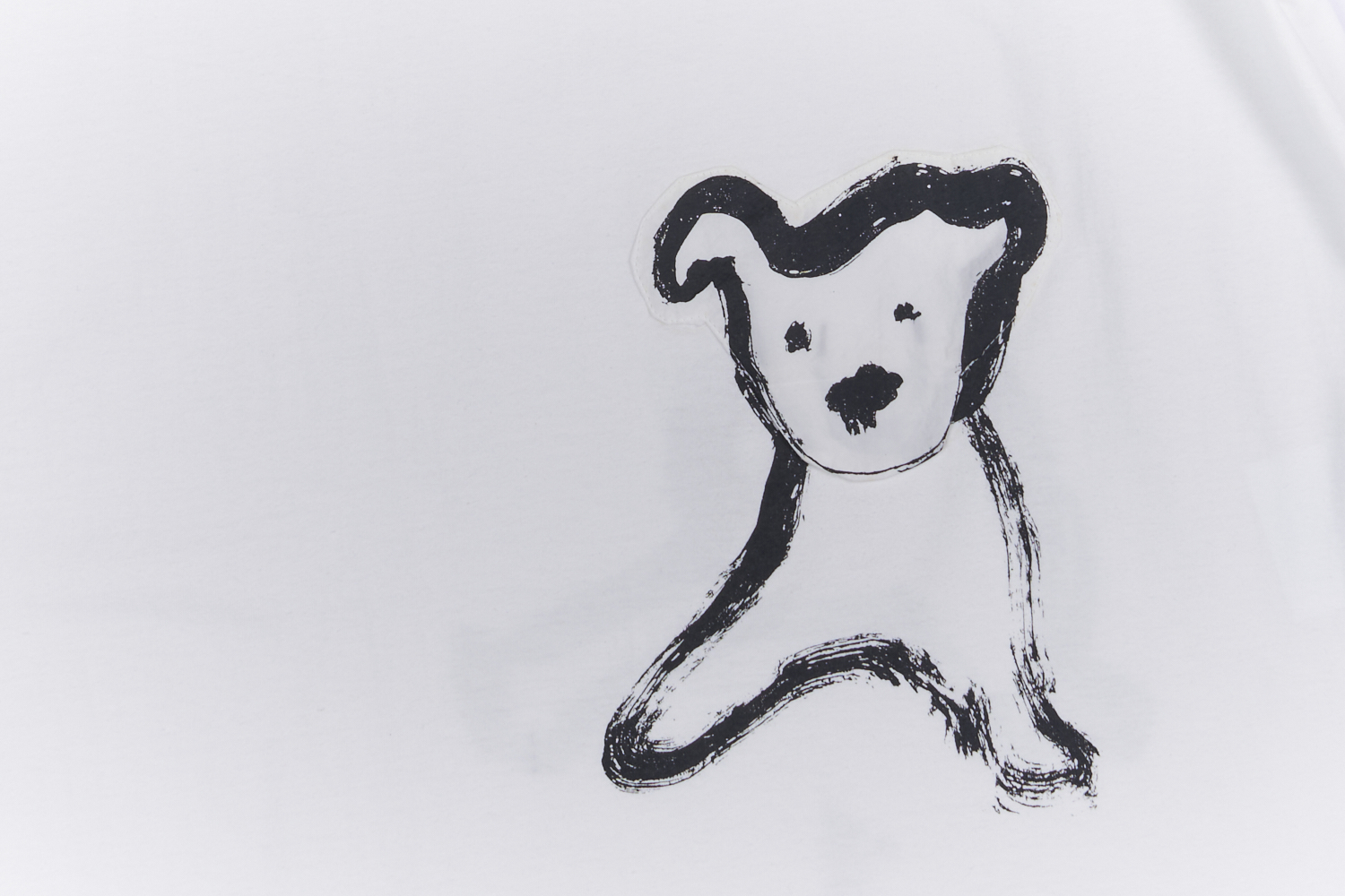강아지 드로잉 프린팅이 유니크하면서도 귀여운 반팔 코튼 티셔츠