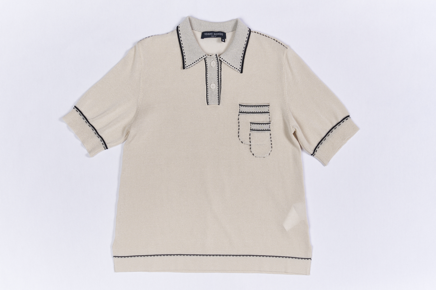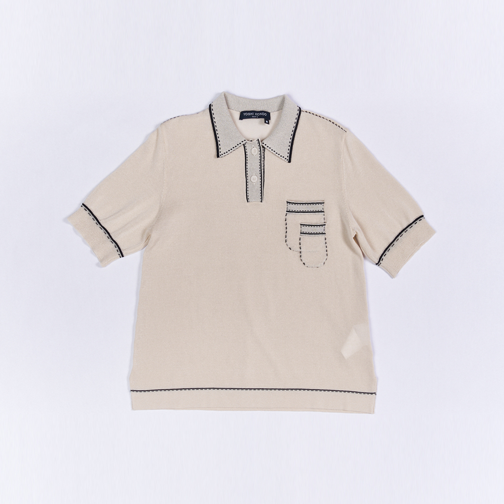배색 스티치로 포인트를 준 코튼 혼방 써머 폴로 니트탑. 은은하게 시어한 소재감으로 캐주얼하지만 여성스러운 무드의 제품