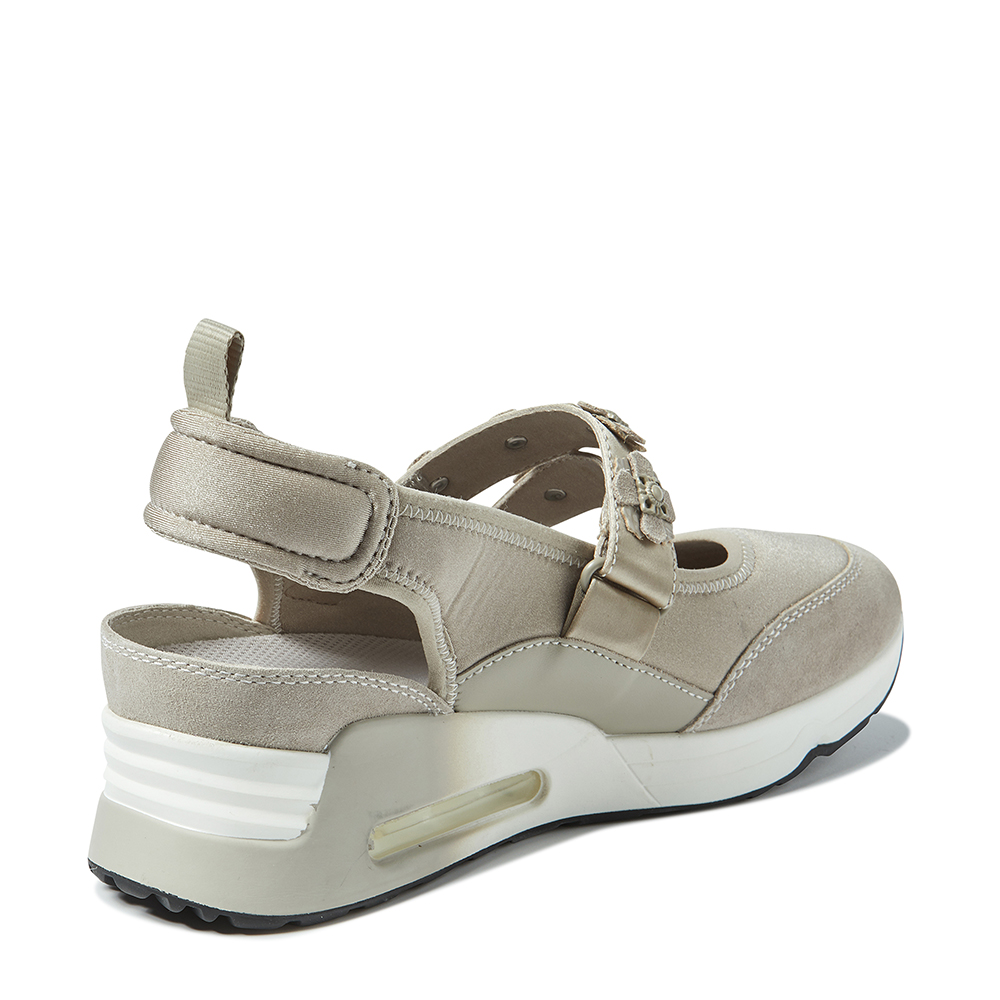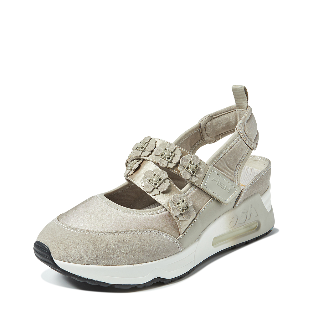 - 메리제인 무드의 플라워 스트랩과 프리미엄 가죽과 라이크라 소재를 적용한 에어힐 샌들