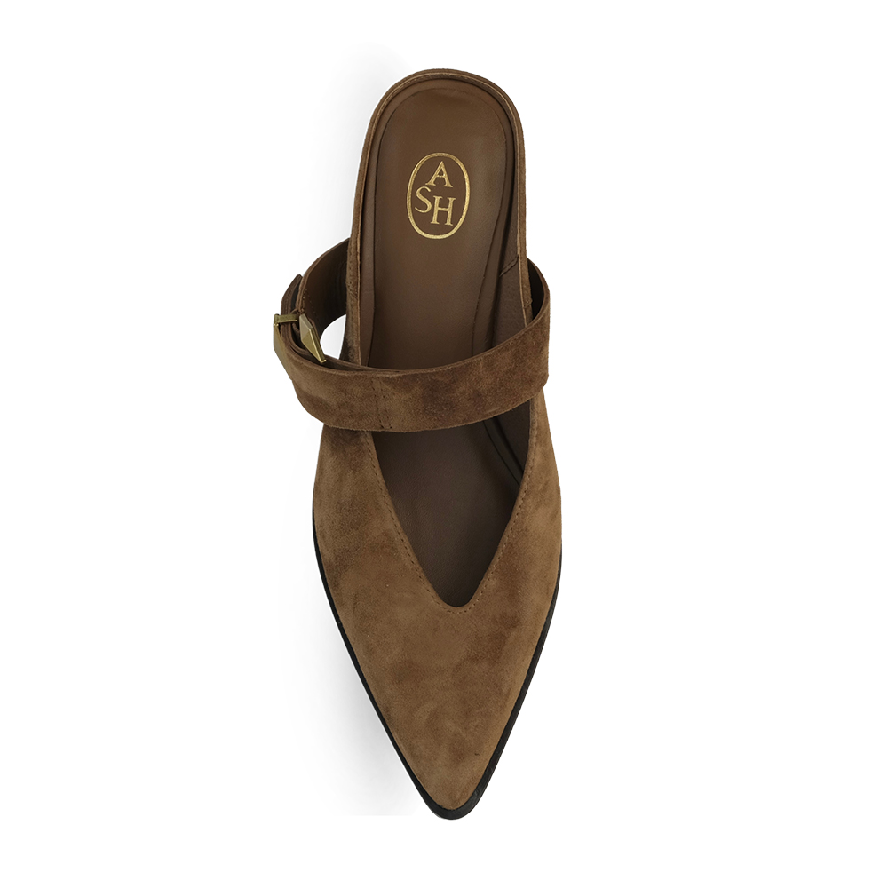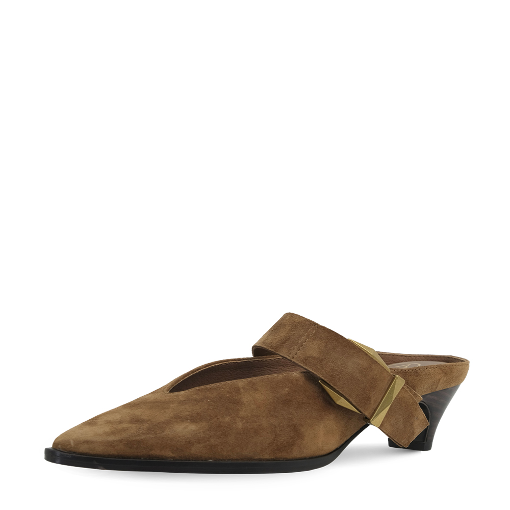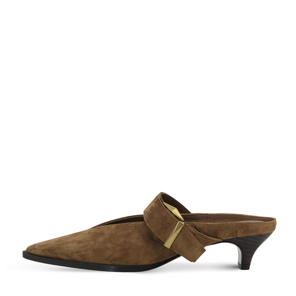 - 부드러운 스웨이드 소재에 발등을 잡아주는 와이드 스트랩 버클이 포인트인 블로퍼 스타일로, 깔끔하면서도 존재감 있는 미들 힐 슈즈