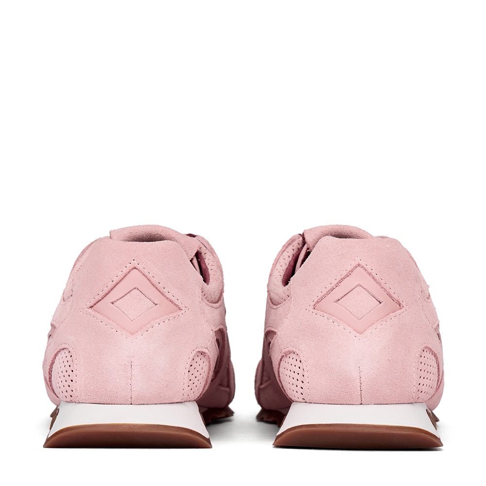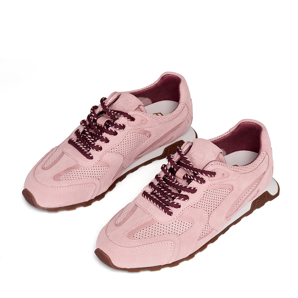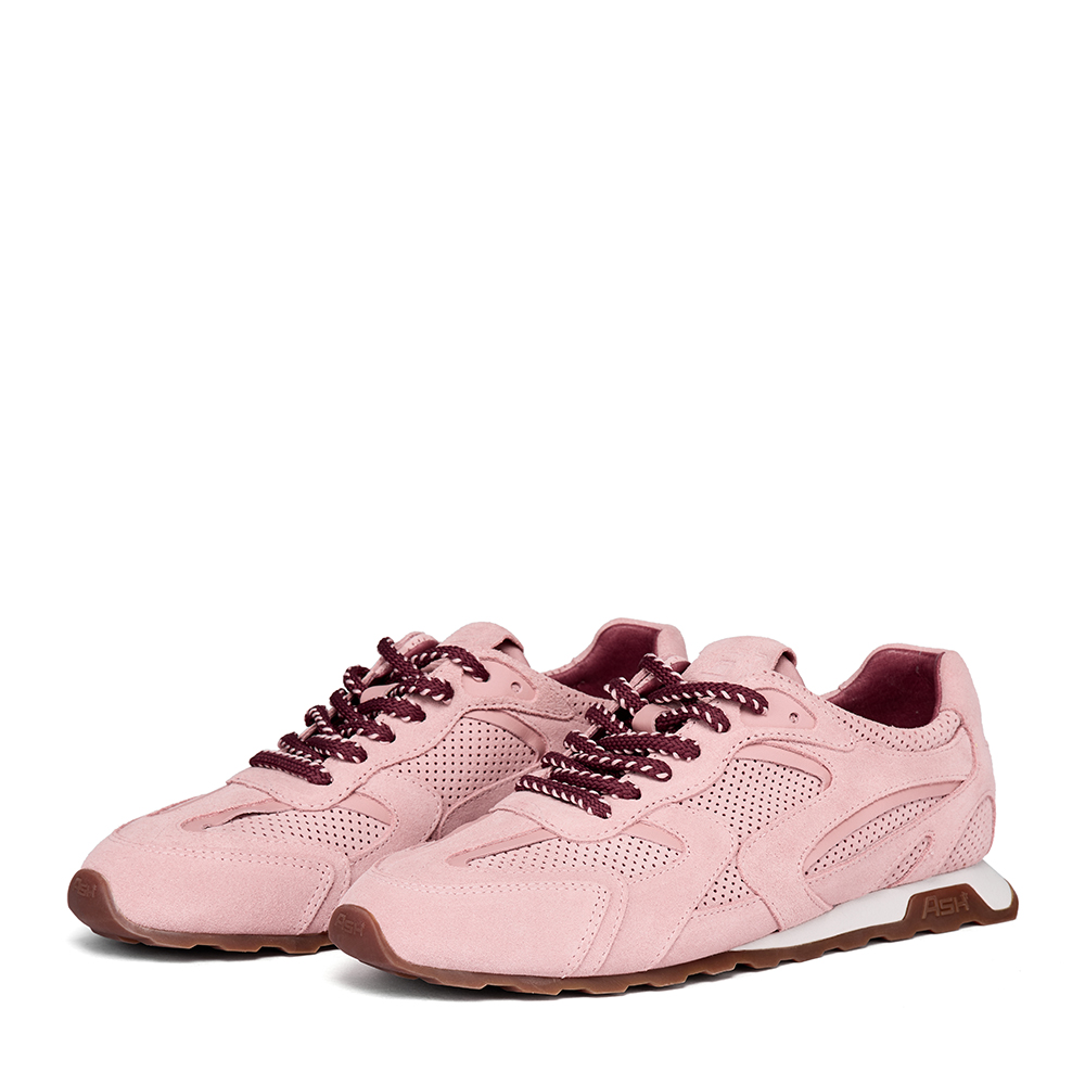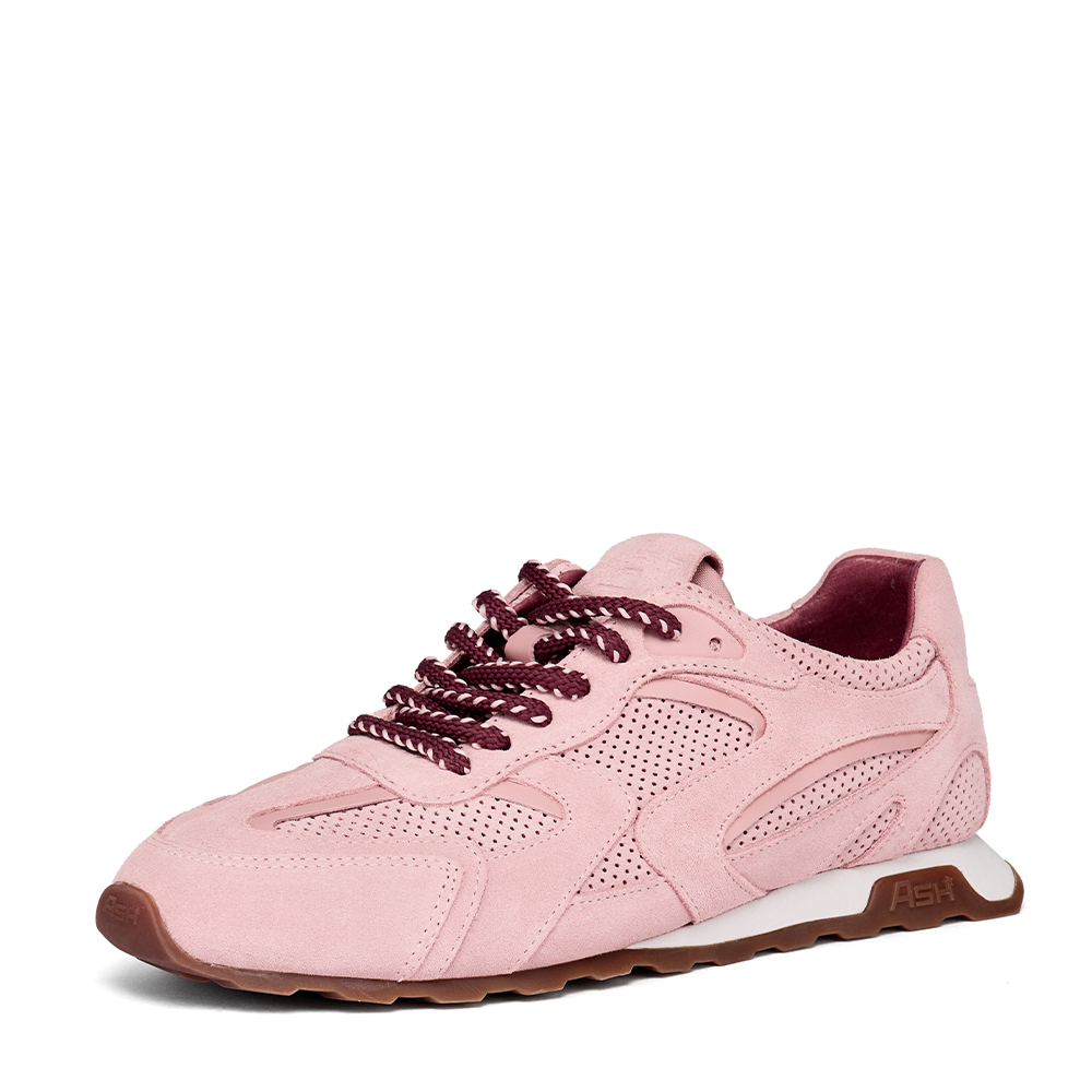 - 사선으로 날렵하게 뻗은 화이트 컬러 아웃솔에 아쉬 로고가 새겨진 브라운 톤의 밑창이 조화를 이루는 스니커즈